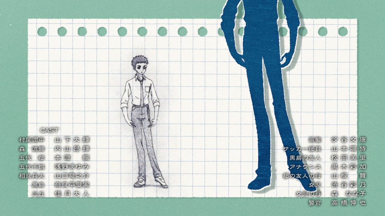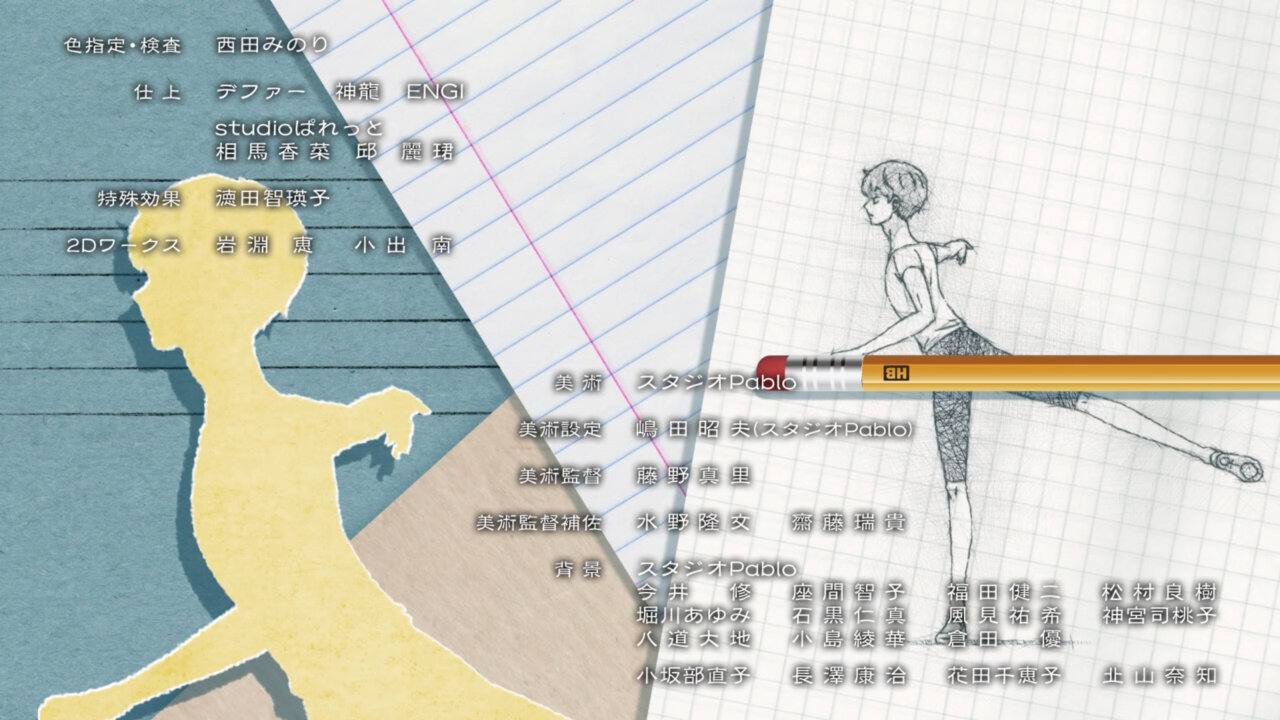 At the heart of Junpei’s popular kid act is the very real, raw desire to be needed. As a kid, the idea that you are needed because you are of use to someone else (in Junpei’s case, as the “man of the house” needed to protect the womenfolk) is learned. Hence his tough guy act. When he feels he is needed by ballet, he puts his all into ballet. Once that is crushed by comparisons to Luou, he drops ballet. Now that he feels needed for his friend’s band, it seems natural that he’ll try his hand at music. I am a little doubtful of his soccer friend’s interest in starting a band. I could see him trying to catch Junpei doing something embarrassing on camera for the net views. I didn’t realize this before, but the Roosters were actually a Japanese rock-band (and quite a good one too). Also on the music side of things, that ED-sequence was simply phenomenal (courtesy of art director, Fujino Mari)!