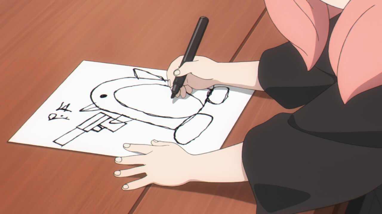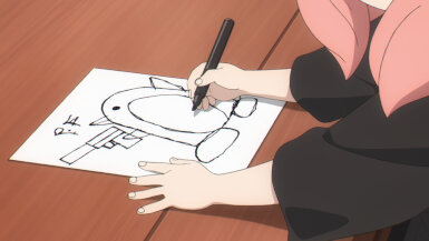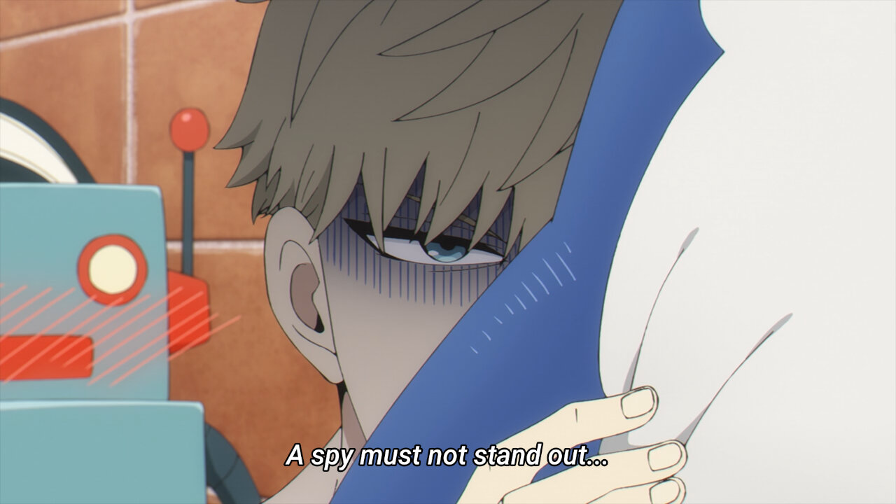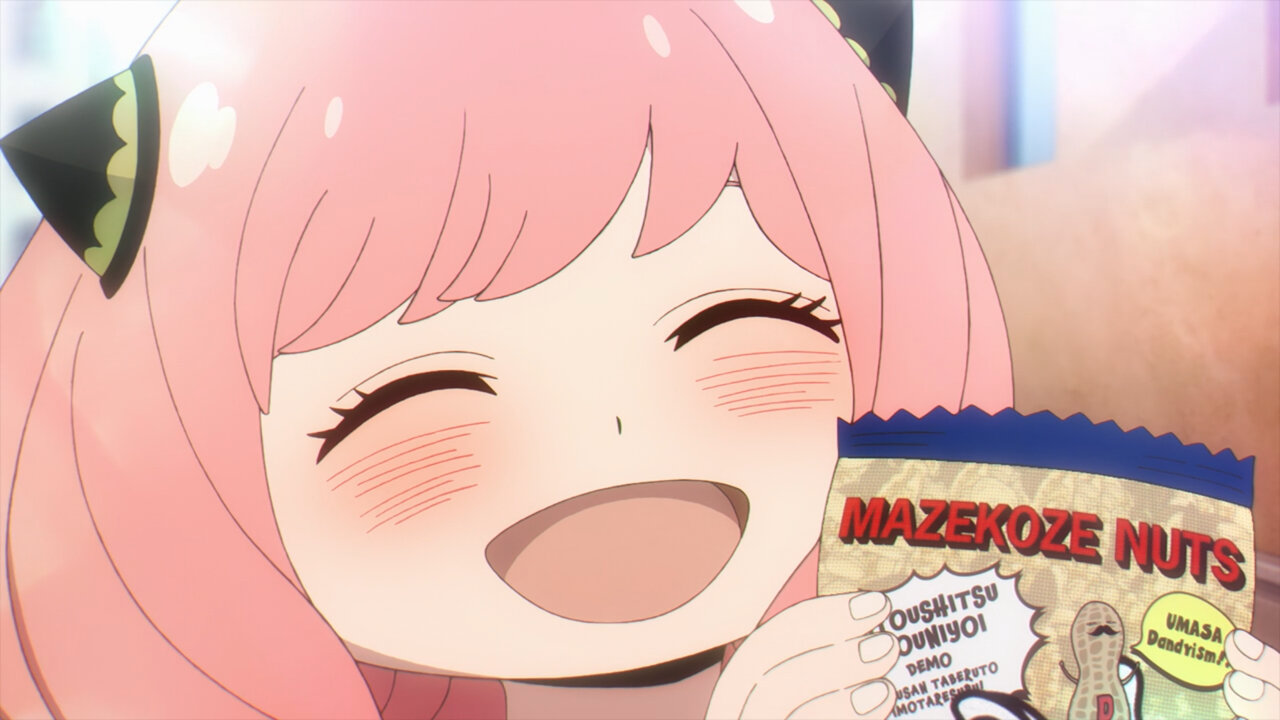 I am really curious as to why Anya is obsessed with peanuts-I’m not sure if it’s a pop culture reference or just a character quirk. If it’s some sort of reference, the only thing I could find after some digging was the spy comedy My Favorite Spy where Bob Hope played a character called Peanuts-that might just be a coincidence though. I loved the nod to the OP on Anya’s peanut bag-the name of the snack “Mazekoze Nuts” translates to “Mixed Nuts”, the name of the OP song. The band who performed the song, Official HIGE DANdism, is represented by the mustachioed peanut (“Hige” means beard or mustache in Japanese). The caption on the bag which reads in English something like “A heavy snack-it will give your father a stomach-ache if he eats it” is a reference to the song’s chorus about life and relationships sitting heavy on the stomach like a handful of peanuts. All in all, a clever detail.
