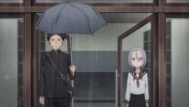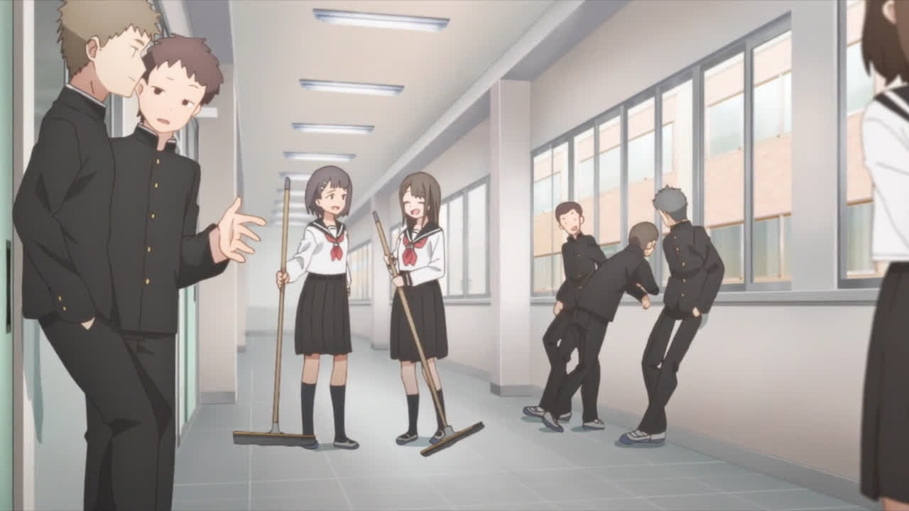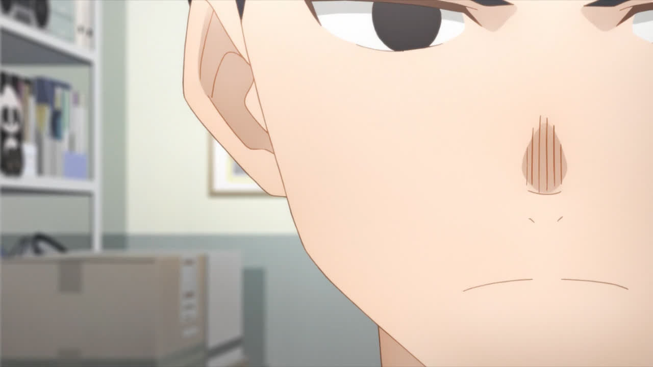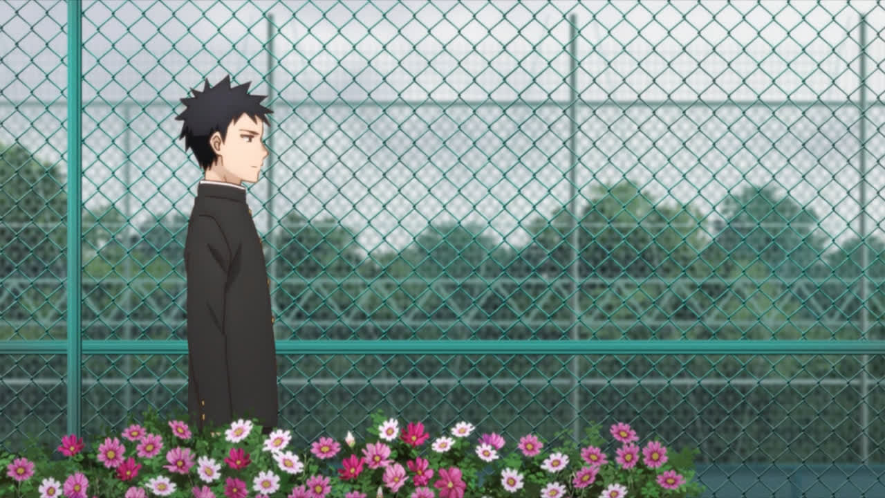 This first episode is slow but gives enough room for our characters’ personalities to shine through. Tanaka Ayumu is one of those people who can keep a straight face no matter what he’s faced with, even gaining him the name “Immovable Tanaka” back in his middle school kendo club. On the other hand, Urishi Yaotome, his senior and crush, wears her emotions on her sleeves. She is easily embarrassed, she can’t seem to receive or give out any direct compliments and is, essentially, an open book. Both Tanaka and her friend, Maki, can easily read what clouds her thoughts.