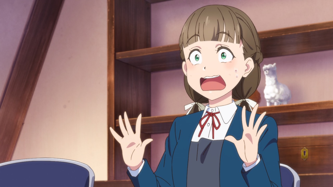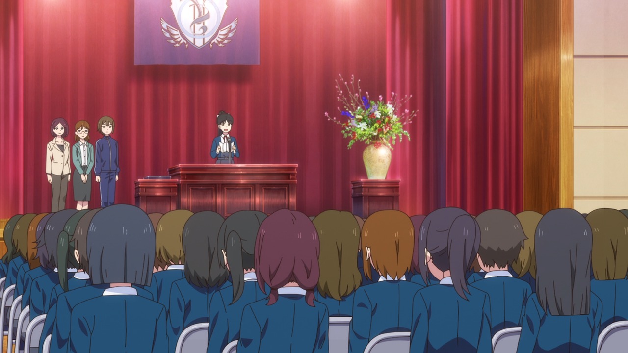 The rest of the episode was pretty tame, typical for a S2 return, but filled with slice-of-life moments, Leilla has run into a problem because they set the bar so high for themselves, new students think twice about joining because of the fear that they might not be able to keep up with their practices