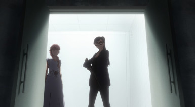 Indeed, last week’s episode was an action spectacular, maybe the best of any show this year. This time we get mostly characters talking to each other – and almost entirely humans (and allied shadows). One of the latter is Mio, who’s had her connection with Haine severed by Ushio, She’s still not quite “right” – her personality seems much more different from her host than Ushio’s for some reason. But it’s important to shadow Mio that she be trusted, and she can sense that she isn’t. She shares some valuable information – the two means of shadow reproduction (and how limited “childbirth” is). The fact that replicated shadows will die in a week if their human is still alive.
