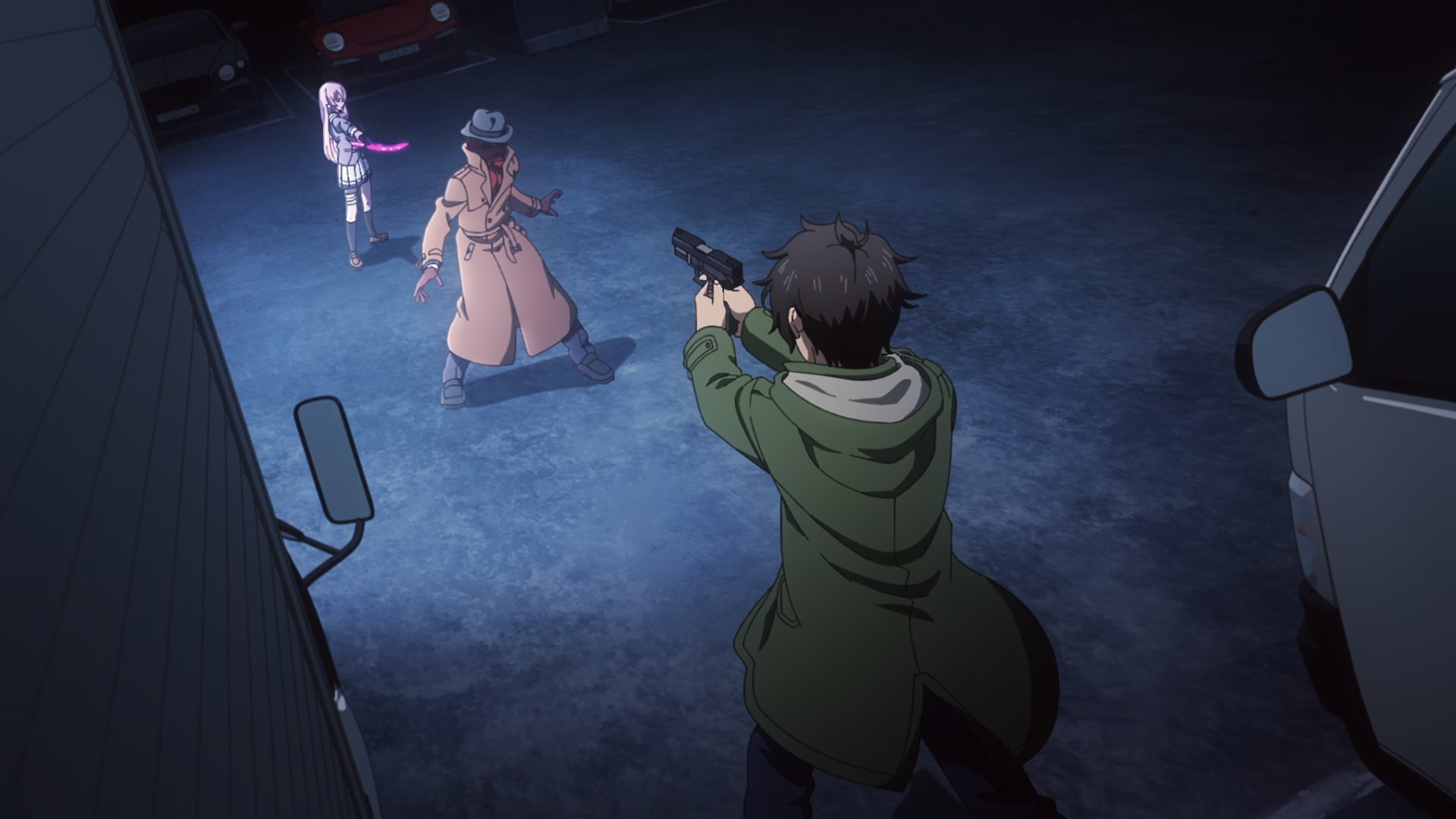One of things I really have to commend Engage Kiss on this week is the level of suspense it evoked and how much it got me doubting my predictions. I thought Miles might be the one who was doing the killing given the early hints dropped (particularly one sultry nun), but damn if the show didn’t slyly suggest otherwise at times with the various possibilities brought up. Hell for one I thought it could’ve been Shuu’s father (but more on that shortly). This setup made for a very nice bit of engagement, showing that for all Engage Kiss is offering up the same tried and true “light novel” story, it’s doing so with a clear plan in mind and a focus on execution. After all, always a nice touch when some scenes can be interpreted in multiple ways. Oh and as for Mikhail and that definitely didn’t see coming second role? I think the results speak for themselves.