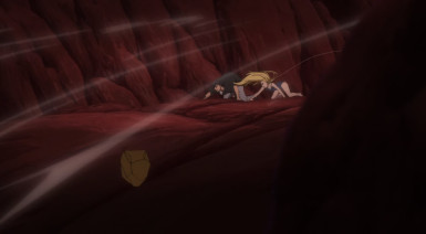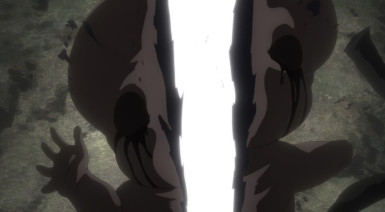 This is surely the early stage of the final battle, spanning dimensions and reaching back into the past. KageUshio has apparently eaten some of her real body, giving her regenerative abilities which take Shide by surprise, and she’s figured out that his real body remains back in the mortal realm. That’s obviously where this climactic tussle will eventually conclude, and given what we’ve seen to this point I see no reason to expect it to be anything less than spectacular.