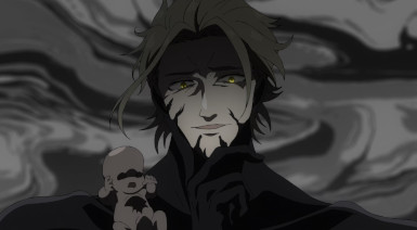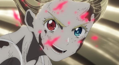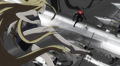 Tokoyo is beautifully realized by Watanabe and his team, the aesthetic something like a surrealist painting with a touch of Van Gogh. It’s an eerie and foreboding setting with an odd beauty to it, and its existence seems directly connected to Hiruko’s memories. She’s reverted to infant form and is basically an appendage for Shide at this point, but her Haine half has split off, with the original human personality now in ascendance. And she allies herself with Team Shinpei, which after all includes the twin of her only friend. That twin takes control of Shinpei’s body, shouldering his pain as he did with his sister, so that Shinpei’s body can keep transcending its human limits.
