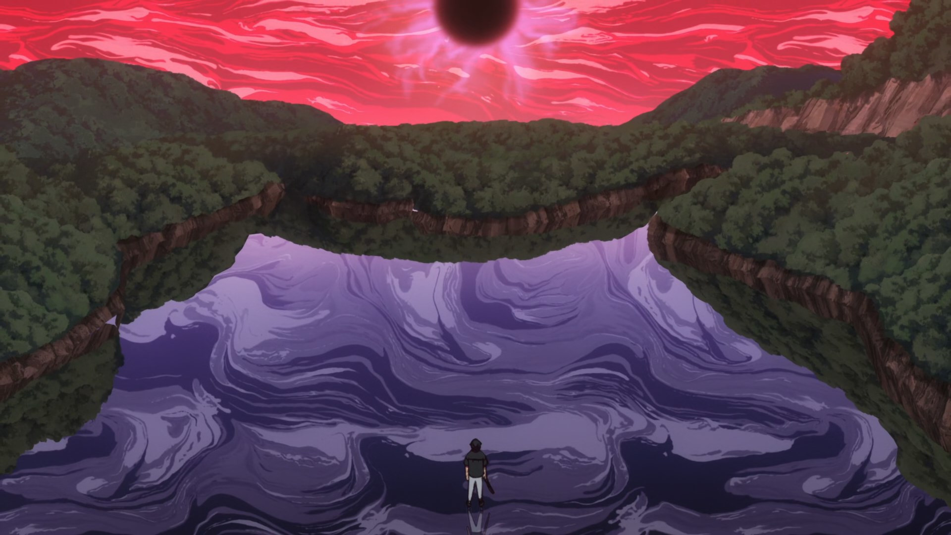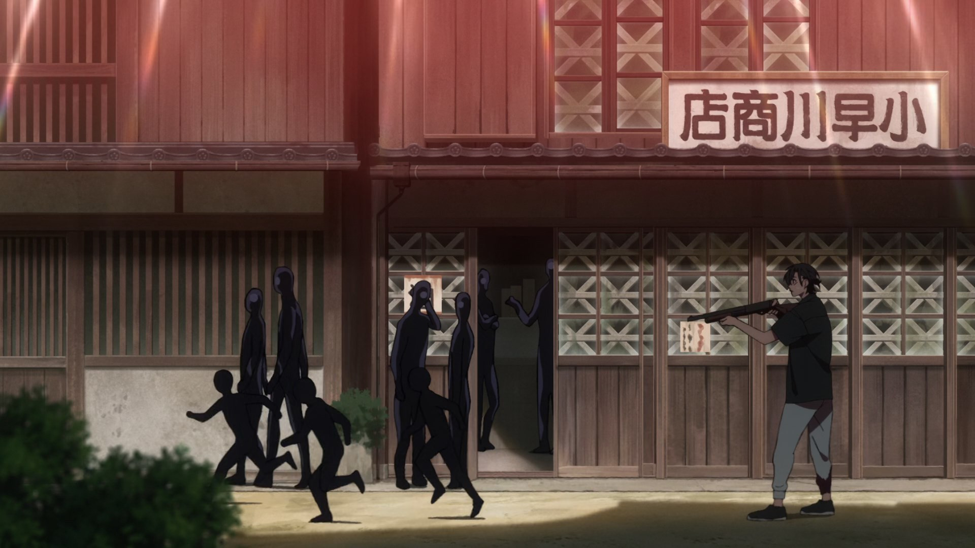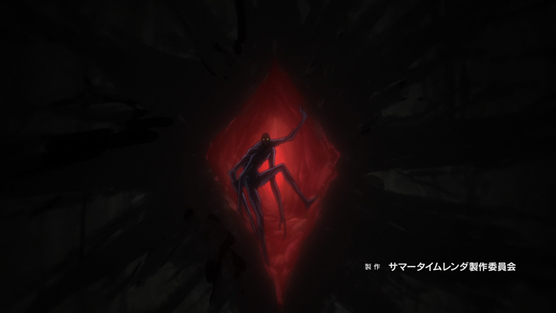 We’ve heard Ushio referred to as the “Egg” before, though never by Shide. She – and the eye still in her possession in this timeline – seem to be the key to Shide’s plan to no less than destroy the world (though seemingly as a means to becoming master of the universe). That’s solid big bad motivation, to be sure. We finally cross over to “the other side”, the place Haine pined for – and it’s Tokoyo. In Kanji it’s 常夜, which more or less translates as “eternal night”, and in Summertime Render’s context it’s the land of the dead. There are implications there regarding what shadows may actually be, but in practical terms what matters for now is that it’s where the final battle – this phase of it anyway – between Shide and Team Shinpei will take place.