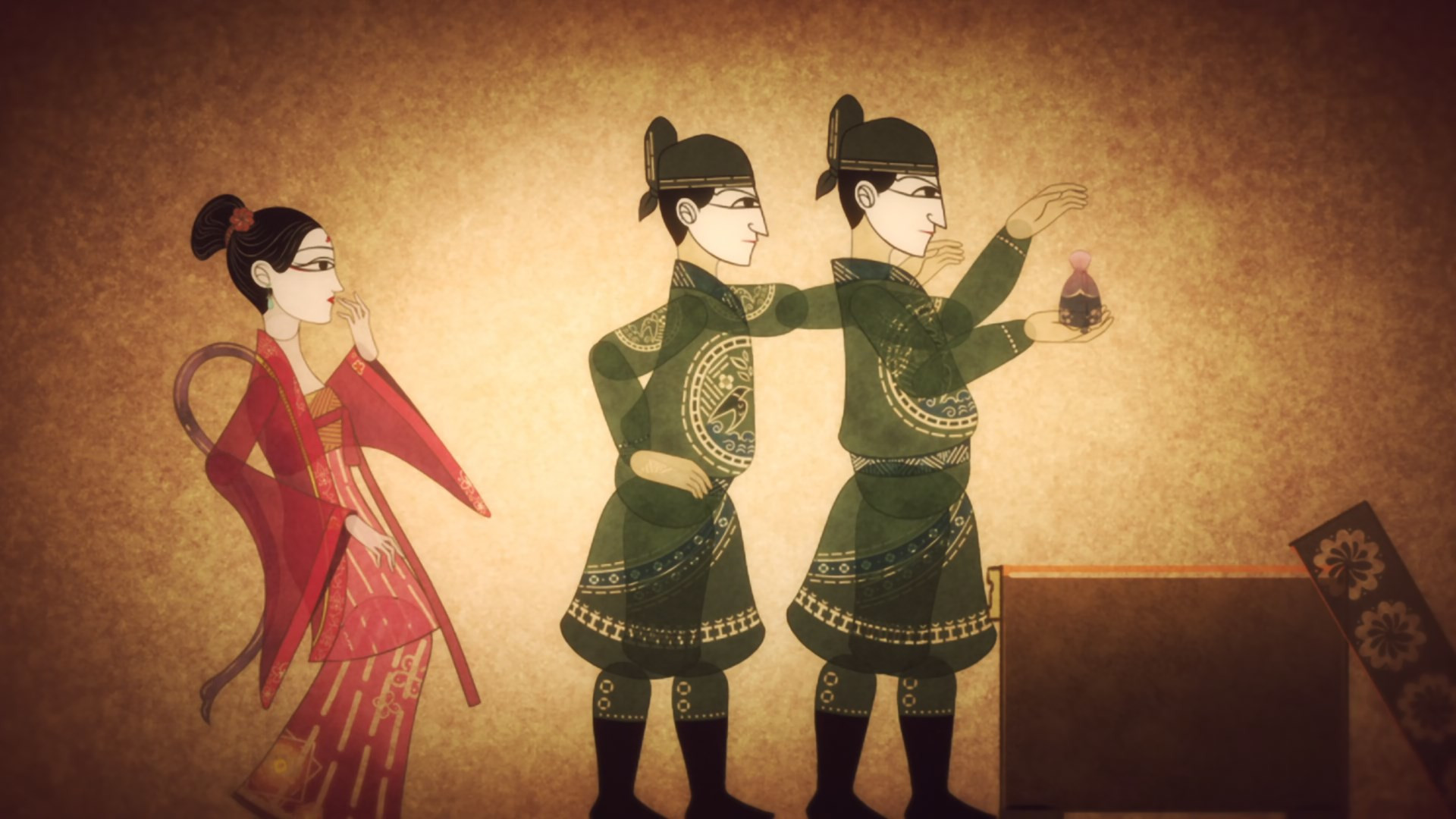 It’s this arrangement which leads into what KnK will likely be about: relationships – and not just the personal kind. Jusetsu is the obvious one, as her magical powers, aloof status, and clear links to a previous dynasty (which also allude to her true age) are things demanding some serious explanation. Likewise, Koushun’s tortured past and recent hesitations in doing what’s expected allude to future troubles as seemingly simple problems like ghosts give way to more tangible matters of state. In effect we have a slow burner on our hands, something not unlike Akatsuki no Yona where action is replaced by mystery and suspense with thoughtful discussion. Don’t expect things to quickly come to a head here – but when they do, they’re bound to get wild.