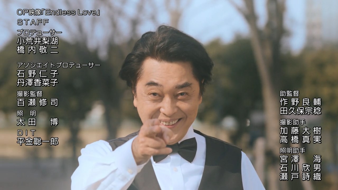 Right from the start, what sets the tone for the episode is a live-action segment from voice actor Shouta Aoi, who is cast in a Kamen Rider-esque show where he must fight an evil twin and save a girl who I believe is also played by Aoi. It’s such a fun, off-kilter way to begin the show, but also calls to attention just how willing the anime is to bend its own reality for the sake of experimentation.