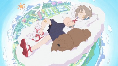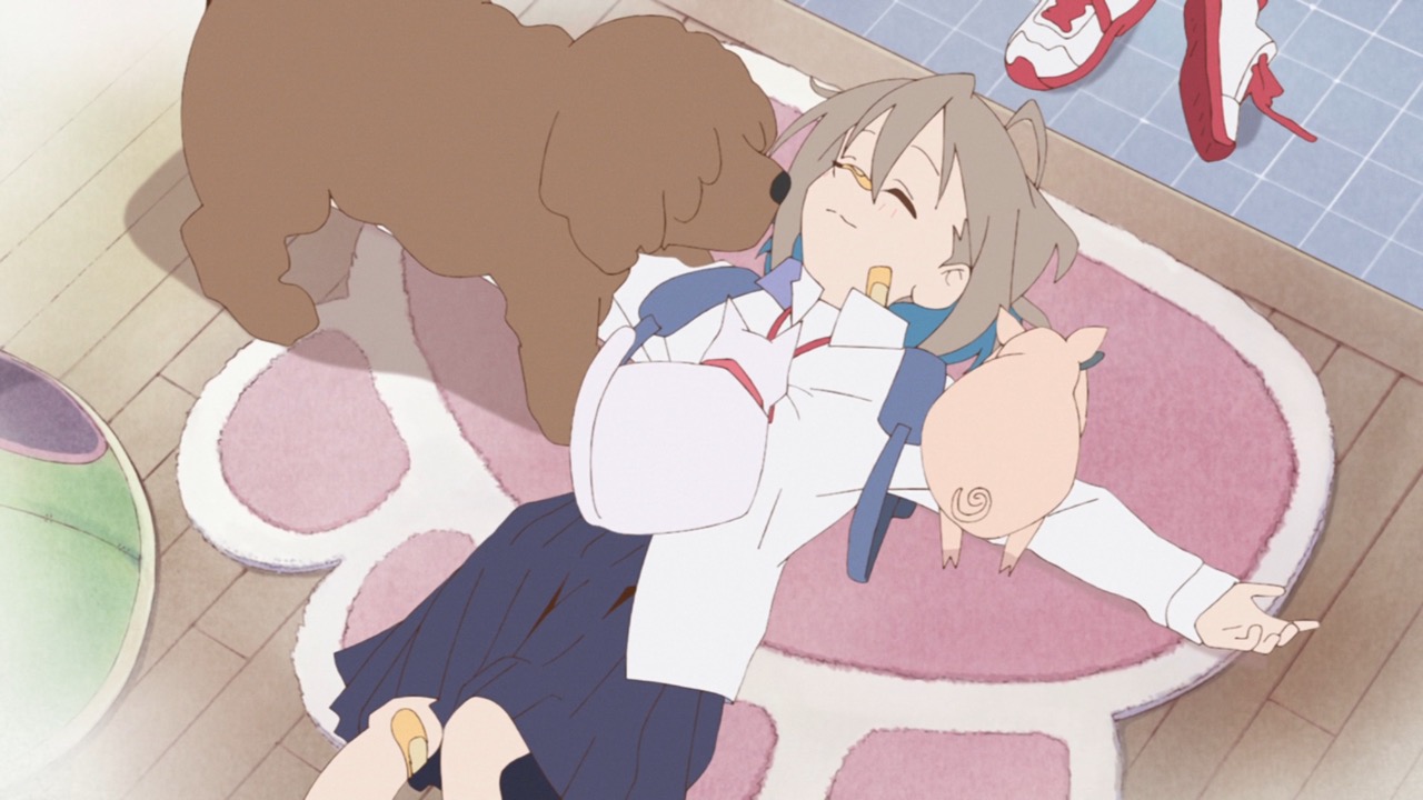 Do It Yourself!! Follows the story of Yua, Serufu (get it?) (Inagaki, Konomi) a high school student whose aloof nature alludes her. She is a sleepy head with a connection for animals, making her character instantly likable, in fact, a little too much so, as she has both a cat and a dog, and a pig who all live in harmony on her bed during the night, but during the day play peacefully with each other. Yua goes to a less elite school than her fellow rival, a childhood friend, and proper neighbor, Suride, Miku (Ichinose, Kana). But turns out their schools are not exactly too far apart, but instead joined together like some kind of genetic sister joined at the hip.
