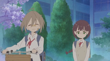 It is not until an unlucky bolt strikes Yua and her bike breaks down, it is here where a tomboy-looking senpai shows up Yasaku, Rei (Sakura, Ayane) and does quick work of her bike fixing it with no problem, however, Yua is slow at taking the world around her, so she misses her opportunity to thank Rei properly, with a loose tangent this is how Yua starts going deeper into this world of DIY.