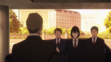 While Anya saves the day, Loid ties up the loose ends, luring in the bomber under the guise of the minister. They added a really clever detail that distinguished the two ministers from each other-if you notice, the lapel pins are different. Loid shows off his cool moves-I had to laugh at the bomber’s reaction.