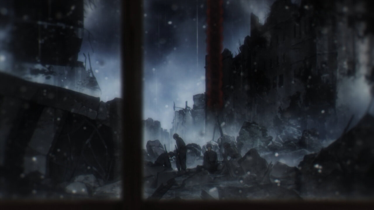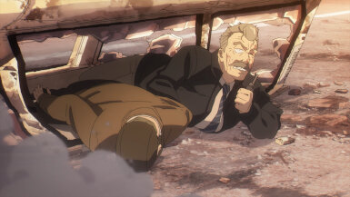 I find it interesting that both the Secret Police and WISE are working for the same goal, albeit independently. For all the enmity between them, they both have peace as their main goal, but are actively convinced that the other side is a threat to it. The real threat lies in the crazy third parties like that extremist group-the kind they both can agree is a danger. It’s a shame the two sides can discover this common ground and work together over it. Alas, such is the nature of politics influenced by propaganda. Things got super dark when Sylvia (Kaida Yuuko) started listing off the horrible side effects of war (and I agree, war should not be romanticized or glorified). It sounds like she’s got quite the backstory herself. It would be fascinating to get an episode on her, expanding on her beyond the WISE leader in the shadows.