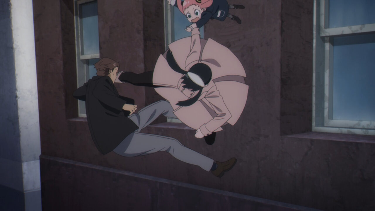 We really get into the meat of the political tension that was built up in the first cour. Things got dark there with the dog seeing a potential future where Loid is killed in a clock-tower explosion. It’s impressive how quickly Anya comes up with a ramshackle plan that somehow works to save the day. In spite of Anya’s atypical ability, her character doesn’t lose all touch with reality in that she has plenty of other characteristics of children her age. Like not being able to read the clock-a huge impediment for something so time-sensitive as bomb detonation. Kids have no sense of time-asking if 5 minutes are up after only 30 seconds, and they captured that here.