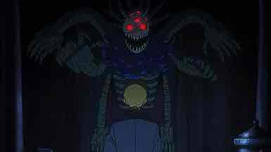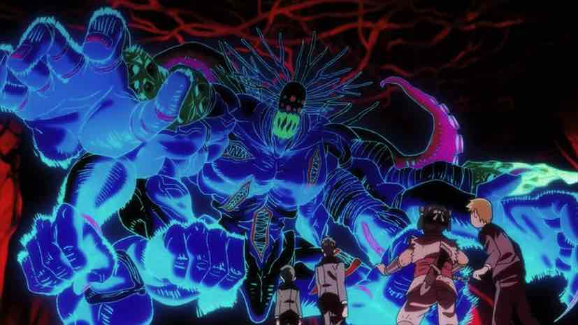 By all appearances Amakusa is simply a nutter, but with a million Yen at stake Reigen is more than prepared to break the cycle of sadness. So he and Serizawa troop off with the youkai hunter, along with late-arriving Mob. And improbably, Amakusa turns out to have something to him – he can sense youkai energy at the very least. He leads the lads into a familiar abandoned building, and lo and behold there are youkai present. Including no less than the Maou and his four demon generals.