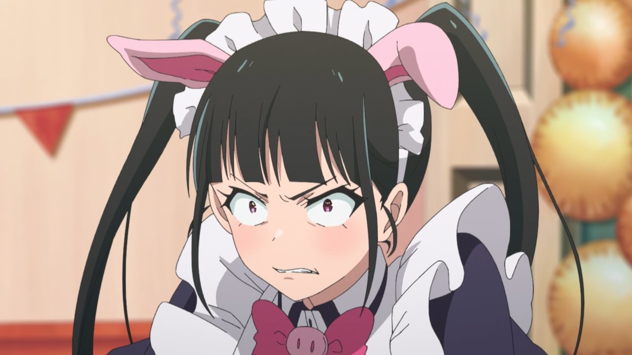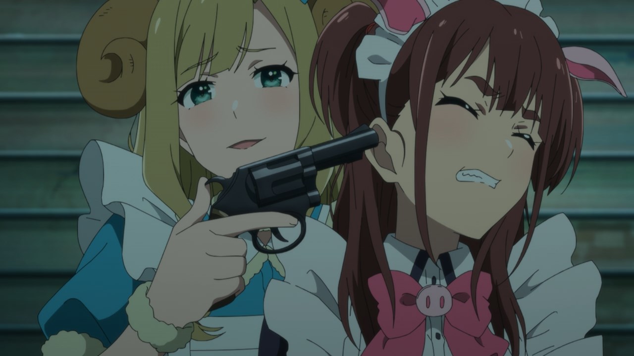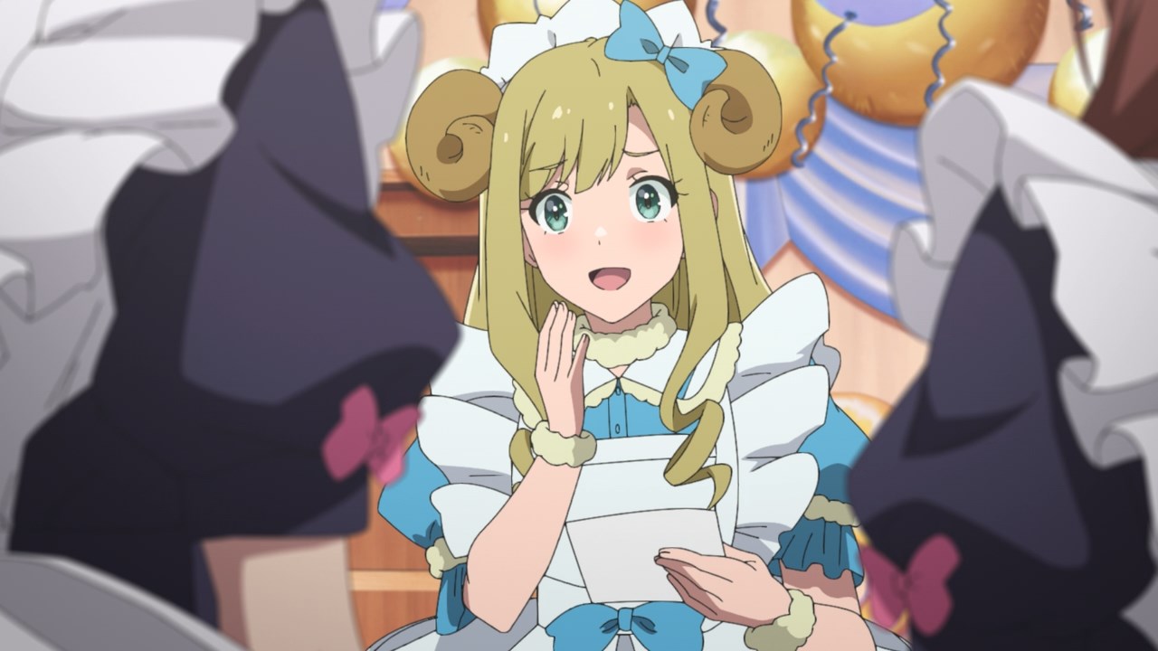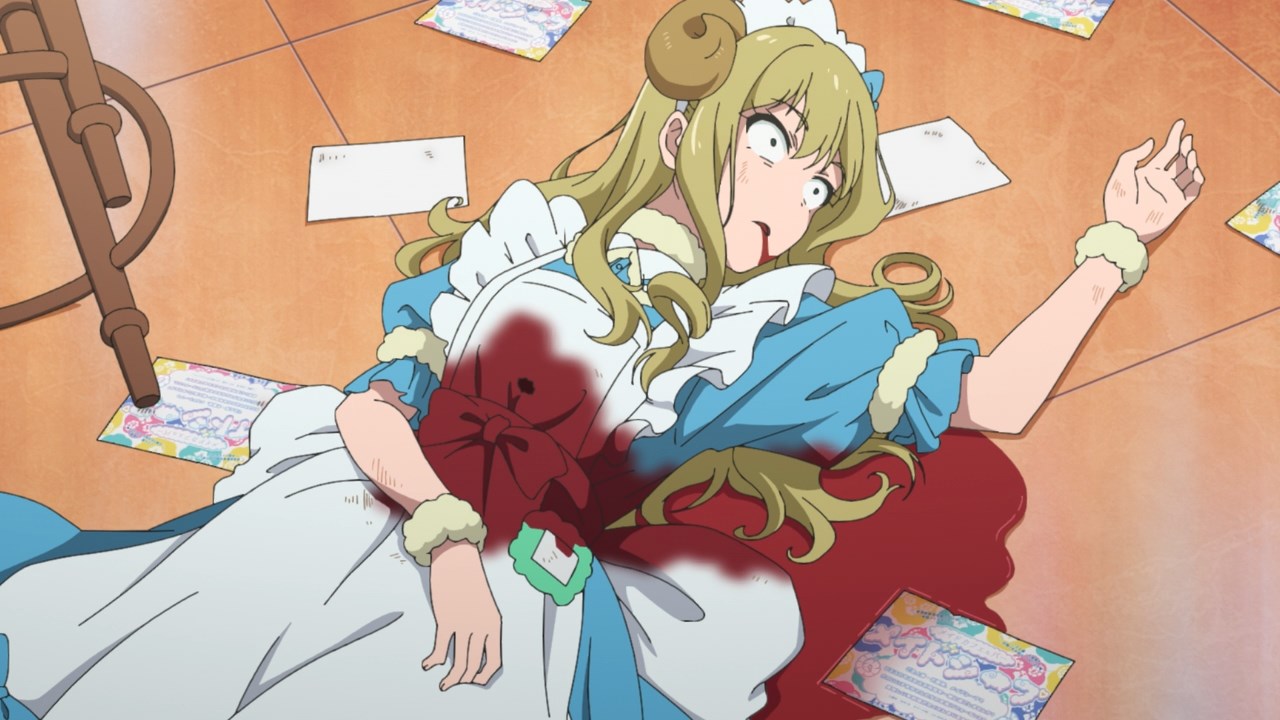The assumption was that other cafes in the group would have each others’ backs, but Maid Sheep has no intention of working well with others if it means having their head maid Kaoruko share a birthday with someone else. They operate off the assumption that they’re all comrades, but once the cat’s out of the bag on Ranko’s birthday, Kaoruko joins in with her clients on passive-aggressively mocking Ranko’s age and Ton Tokoton’s lack of resources. By the time she traps Rank with Nagomi and a pet sheep in a vat of tomato juice, it’s hard not to see it all as a calculated trap to get Ton Tokoton in hot soup with another cafe.