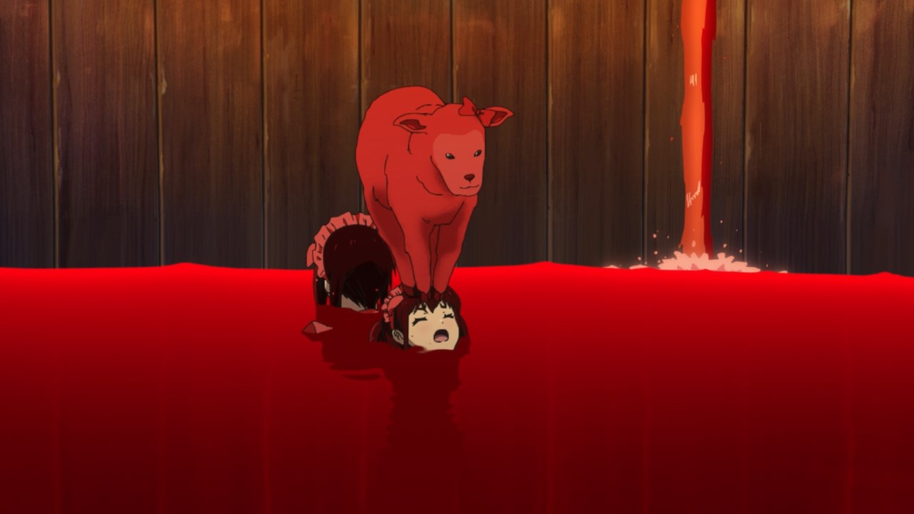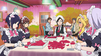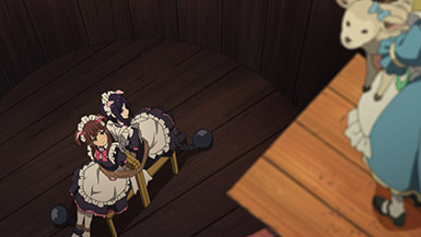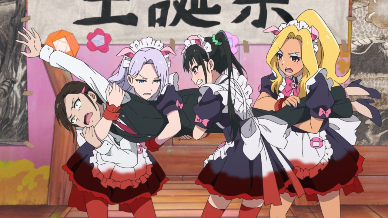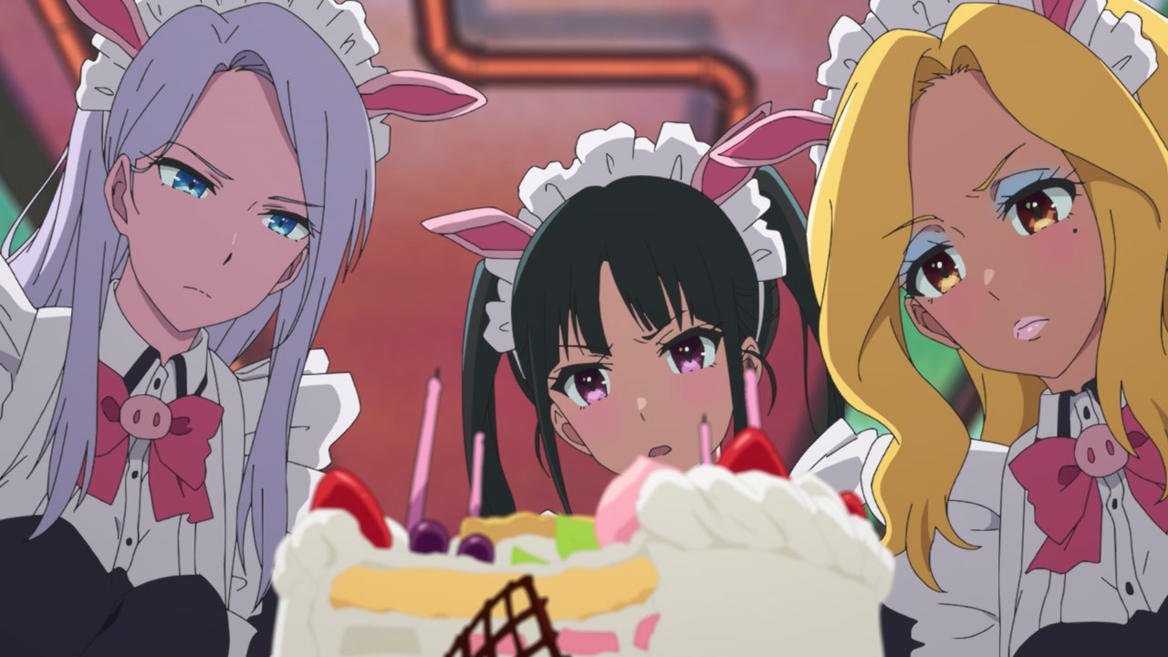 The assumption was that other cafes in the group would have each others’ backs, but Maid Sheep has no intention of working well with others if it means having their head maid Kaoruko share a birthday with someone else. They operate off the assumption that they’re all comrades, but once the cat’s out of the bag on Ranko’s birthday, Kaoruko joins in with her clients on passive-aggressively mocking Ranko’s age and Ton Tokoton’s lack of resources. By the time she traps Rank with Nagomi and a pet sheep in a vat of tomato juice, it’s hard not to see it all as a calculated trap to get Ton Tokoton in hot soup with another cafe.
