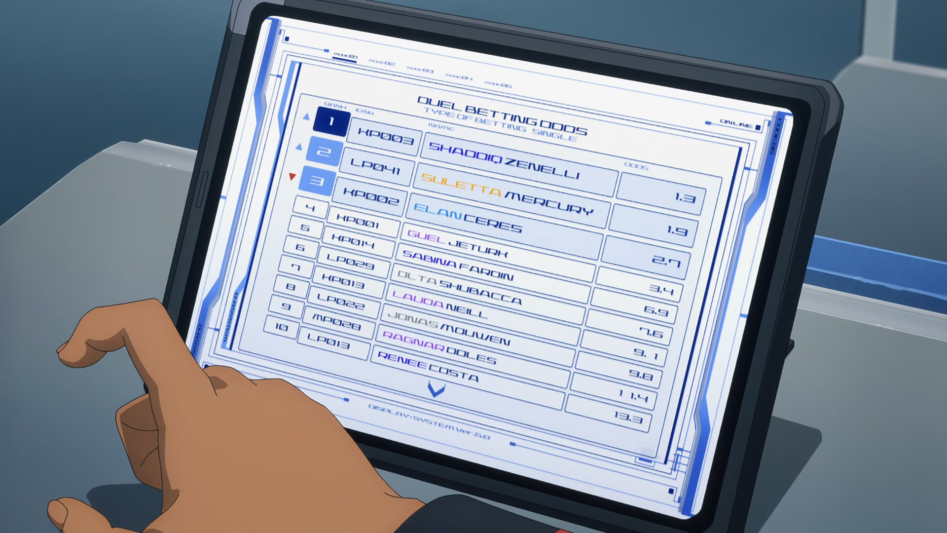 Several characters remind me of Zeta Gundam characters. I am getting some serious Paptimus Scirocco vibes from Shaddiq, with his harem who would do anything for him. he is a charismatic person capable of gathering women to his side by either persuasion or manipulation. We even saw the last episode where Shaddiq starts getting Nika Nanaura on his side. A person who is tired of people picking on her because she is from Earth. This reminds me of Reccoa Londe, so I expect her to betray earth house in the next few episodes. Finally, Miorine Rembran reminds me of Haman Karn, a person who does whatever they need to complete their goals.