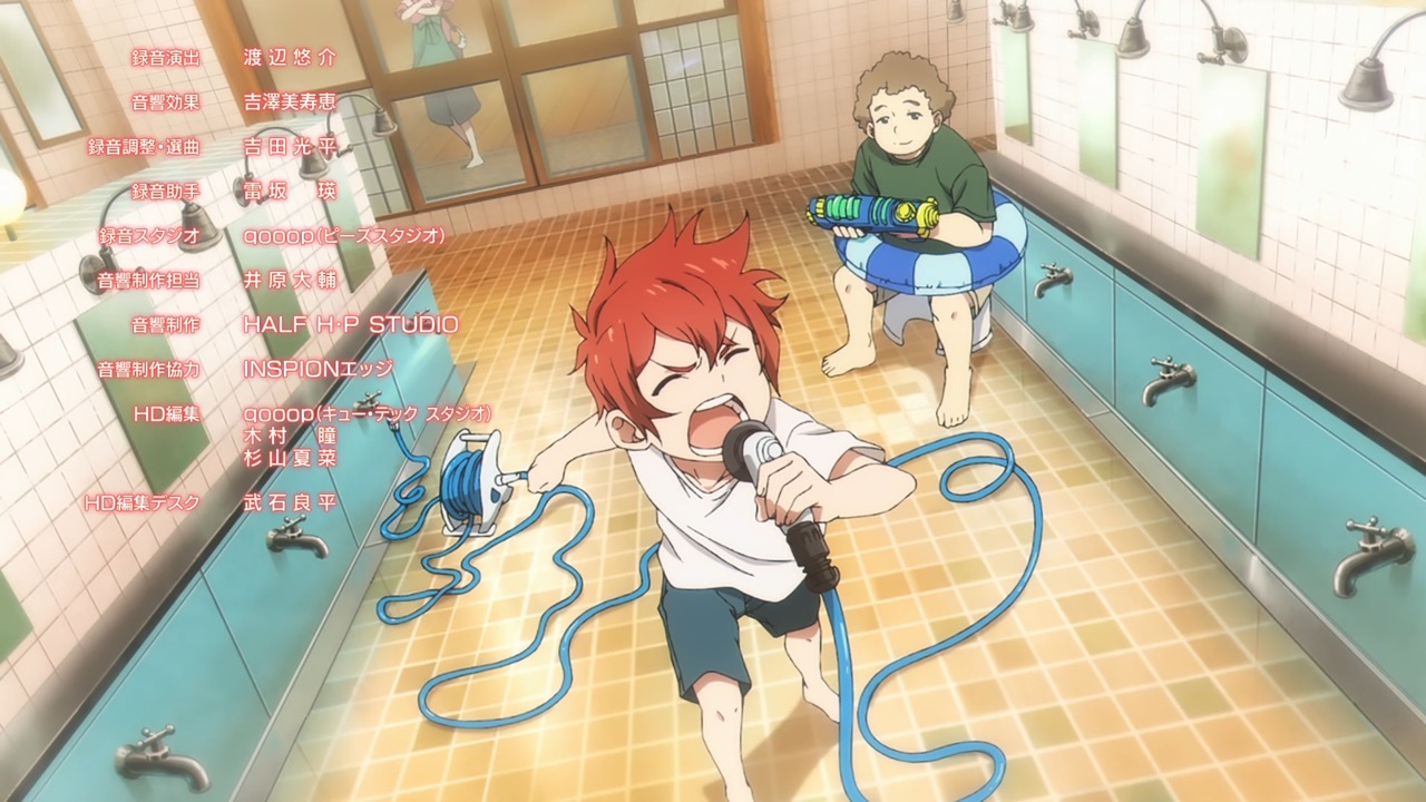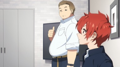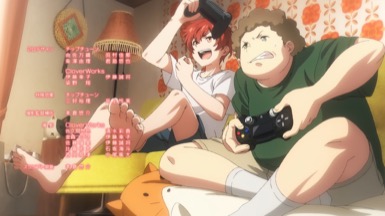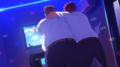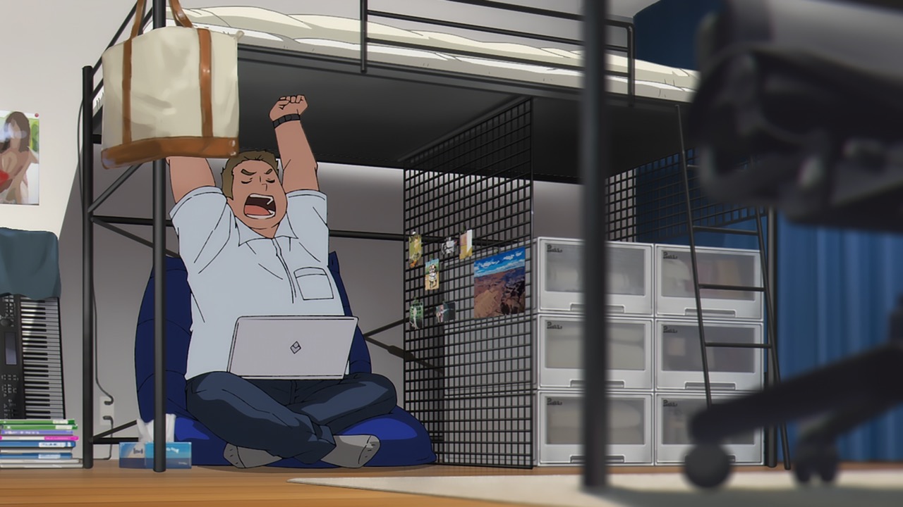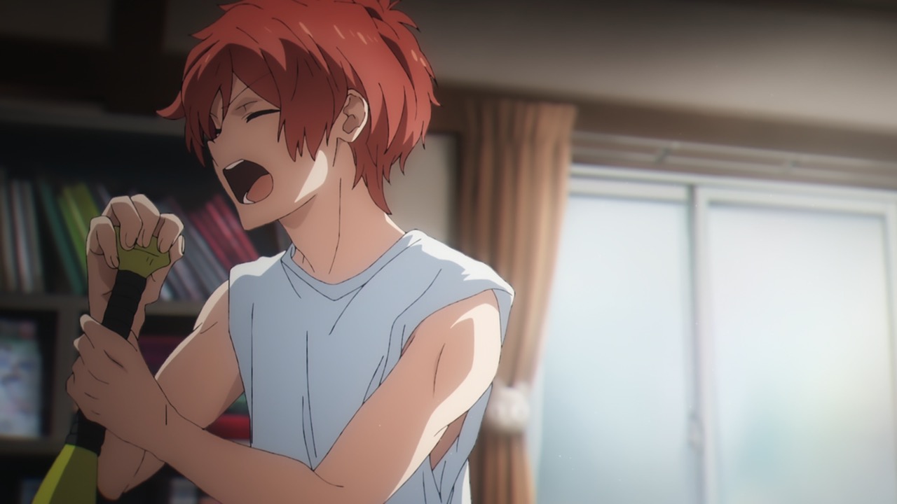 And so the concert starts in full swing, it is later revealed that this is a two-man group called AneLa who have signed on to the music talent agency sMiLea. Not a lot of fuss is spent on introducing those two, but instead, we are swished into Kiyose, Akira (Toya, Kikunosuke) bedroom, where he is singing his heart out, to an anime song. His emotions are raw and the singing is unprofessional and doesn’t come off as good, but there’s a certain heart to it. However, it was for that same reasons that I felt endeared to him. And even more so as the episode progressed. After school Akira goes to his club activities and meets up with Keechan (VA?), his childhood friend. I really appreciate that Keechan has more of an American build – he’s the typical fix-it otaku, that’s obsessed with video games and has a nice heart for helping others fix their electronics. We see later that Keechan is physically fit, so I really, really love how they designed him. Keechan and Akira go have some fun after club, where else would they go but Karaoke? Keechan has been secretly recording Akira behind his back and posting it online. This prompts Keechan to receive an e-mail from sMiLea something about scouting Akira, so it seems.