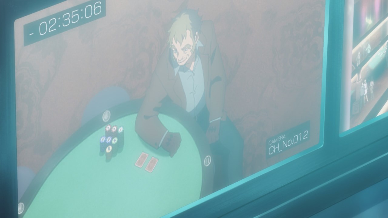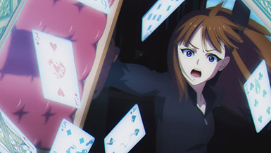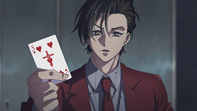 Aside from learning about how the cards function and how each carries its own special powers, they really don’t want you to know anything more than what Finn knows as an outsider. But I feel that it would’ve been easier to be all-in on the show’s idea if they spent the intro giving you a better understanding of who Chris Redgrave, the car salesman, is and not just tossing whatever cool light novel imagery at a wall and see what sticks with viewers. Keeping you out of the loop while all of this is being thrown out makes it feel far more meaningless as if it’s all a test run to see what better avenues High Card would function as within its ambitious multimedia project layout.
