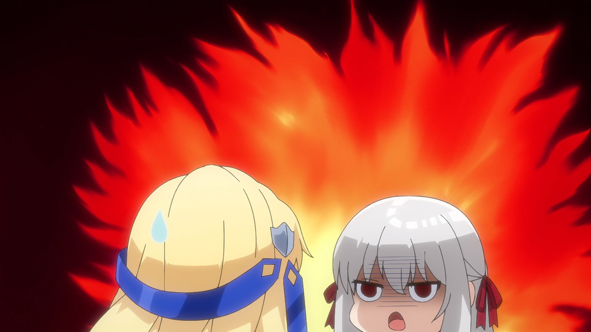 Speaking of battles, oh the humour to come regarding one repeat offender. While major expectations of deep and complex story shouldn’t be expected in Eiyuuou, the presence of some mystery regarding the lapse of magic use, the status of so-called Highlanders, and the reaction by weapon-made-cute Eris towards Inglis’ name do indicate some interesting shenanigans incoming once the updated history of this world become known. Not a big leap for example to suspect Inglis’ patron goddess Alistia might have reconfigured things in the years between Inglis’ death and reincarnation, or that certain magic aspects are being deliberately throttled for the sake of power and status. Not like we’re lacking in hints to point in that direction.