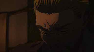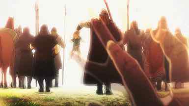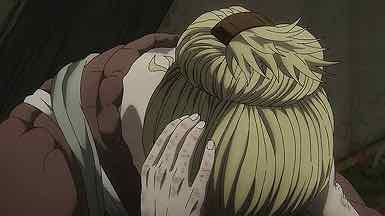 Telling stories of this power through pure dialogue is something only the very best writers – and Yukimura Makoto is one – can do. The direction of Yabuta-sensei and the stupendous background music by Yamada Yutaka certainly more than play their part, but the pathos here is in the situation Yukimura has created. Ultimately this all ties back to Thorfinn, in his spiritual infancy, trying to find a reason to believe there’s something better out there – and that it can be reached without killing those who would block his path. It seems impossible that he might find it in his world – but perhaps the answer lies in leaving that world behind altogether.