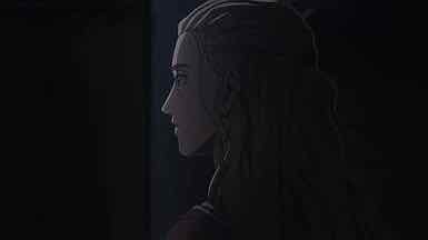 So Gardar is not a Viking warrior (he’s actually a Swede), but a warrior nonetheless. And the feud he was involved in…while there is a bit of politics involved (mentioning that the other side taking over that iron ore marsh will alter the balance of power), it’s more of a feud over resources. And in the worst possible stroke of luck, while Gardar and his companions were away, Vikings raided the village and enslaved those they could take home, including Arnheid and her child. I’m guessing at some point in time, Gardar searched for his family but was also captured and enslaved. (Also, loved seeing Thorfinn regain a bit of the humanity he lost by shedding a tear over Arnheid’s story.)