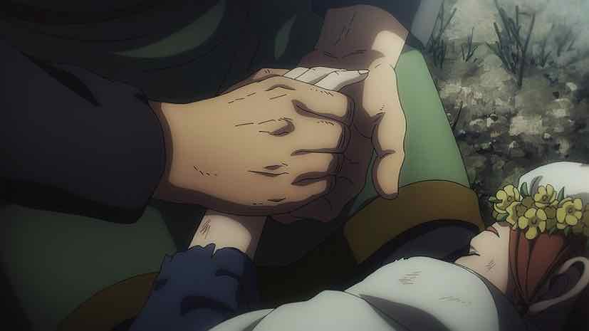 History offers us no greater paragon of injustice than slavery. It’s the connective tissue of Vinland Saga, the thing that ties the first season to the current one and dominates the lives of the characters. Einar has seen this injustice from all angles, and helplessly rails against it. He knows Gardar is the man who’s come to take the woman he loves away from him, but his loyalty is to his indignation. He wants Arnheid to be free more than he wants to possess her, which speaks loudly about his true nature. But he has only justice on his side, and thus no power to do anything but throw away his own life. And, as Thorfinn so pointedly asks him, is he even capable of killing a man?