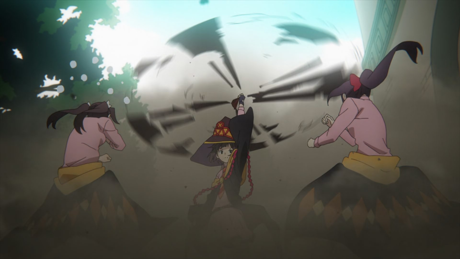 Although still ostensibly a comedy, hard denying that Konosuba’s explosion detour is doing a fine job thus far of being more than laugh your sides off. Whether fully intended or not (and there’s some room for debate on that), we’re truly getting the full meal deal of Megumin-isms and sly tsundere attitudes thoroughly mixed in with larping galore. Say what you will about comedy and subjectivity, but boring this certainly ain’t.