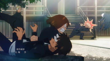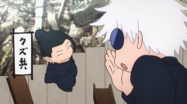 After some old favorites make an appearance, Ieiri Shoko (Endou, Aya), comments that the barrier had been concealing them for two whole days! As they come to terms with this fact, the rest of the episode starts to take form. We see a more carefree Gojo, if anything we start seeing the rivalry Gojo holds with Suguru Getou (Sakurai, Takahiro) and we can already start to see the fruits of his descent into evil – the roots of his hatred towards non-sorcerers! In essence the truth behind his actions. I’m in love already!
