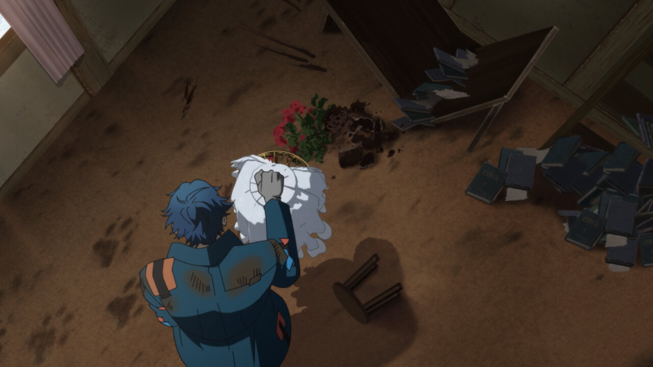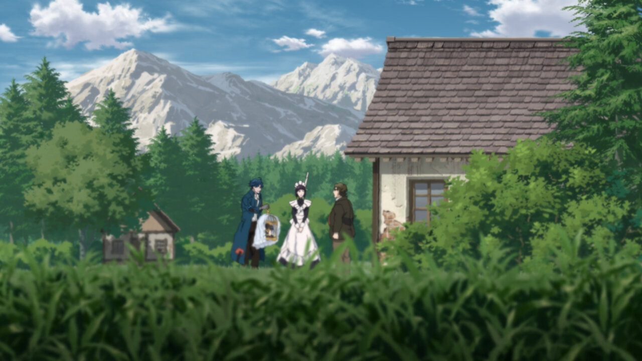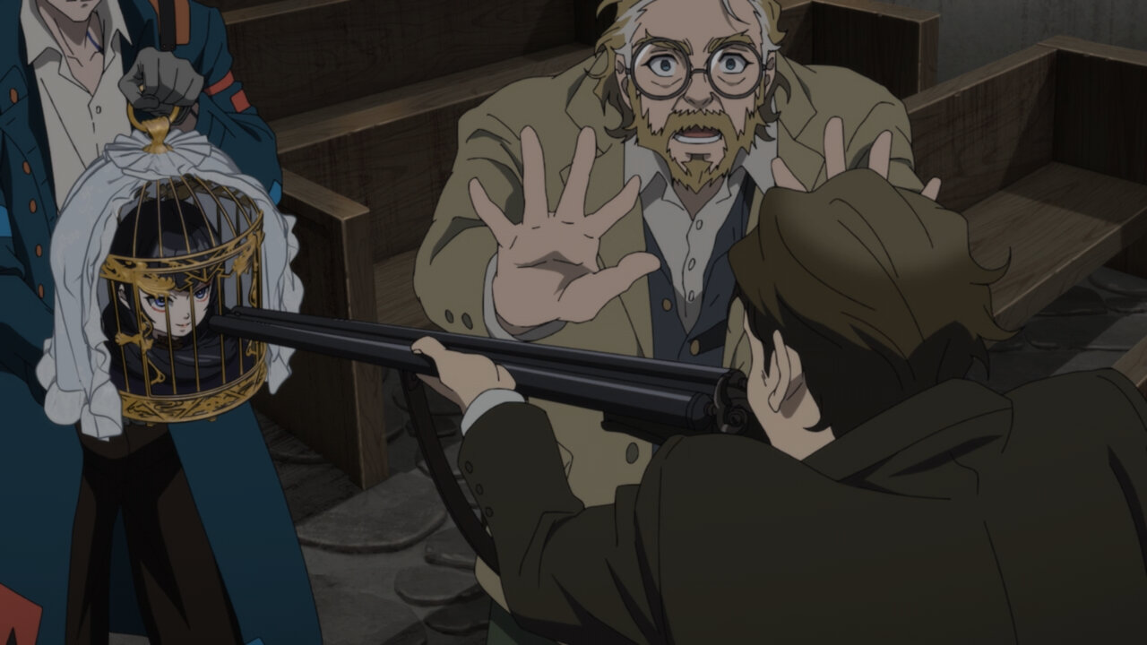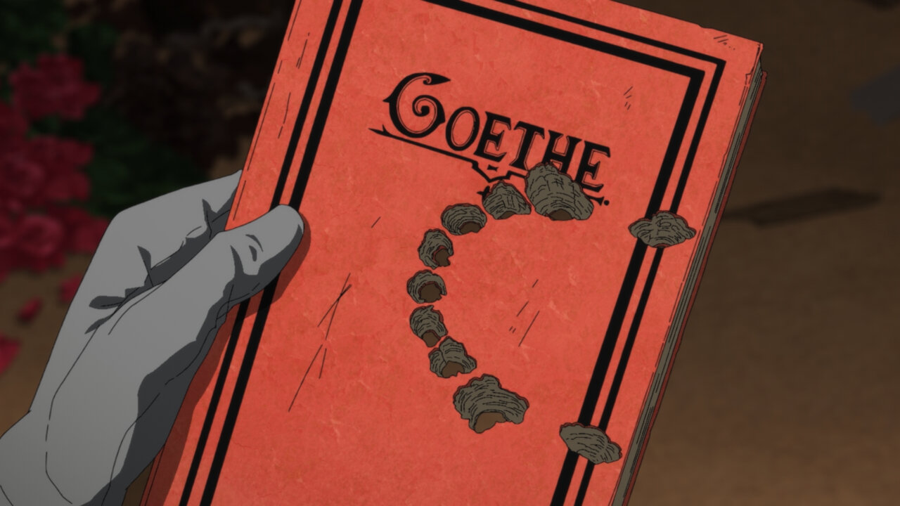 It was kind of matter of course that the bite-mark evidence was a copy of Goethe- I was starting to wonder when some reference to that would show up. The bite marks on Tsugaru’s handkerchief and the ones on the book matched, suggesting the same culprit more than a copycat, though I’d be skeptical of that until I saw the actual teeth. Whereas the family hyper focuses on the bitemarks, a potential clue that gets suspiciously brushed off is the rifle that went missing around the time that the supposed werewolf attacks began. We witnessed an “Oh shit” moment when the old guy tried passing off the werewolves’ location as someplace completely different from the “Forest of Fangs”, only to find out his BS wouldn’t stick- something smells here and it isn’t the werewolves (or is it?). I have a hunch the gang is a lot closer to the werewolf town than the people living there would have them believe.