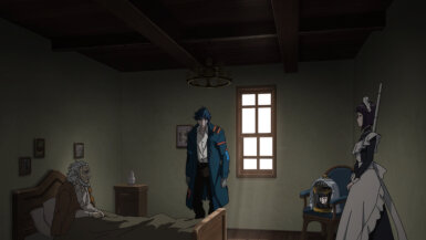 As always, the detective trio steals the show, Tsugaru with his clever “leg up” and waterfall puns and the ladies with their equally hilarious jabs at the “headliner”. Throwing Tsugaru’s pillow down the chimney because they needed something that was ok to get dirty was quite the jab.