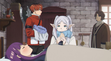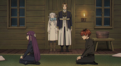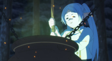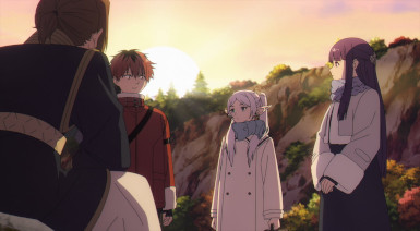 Sousou no Frieren kicks off its second cour (the only series I remember to do so with Episode 17) with an episode that could hardly be more Sousou no Frieren-like. Which is great in the sense that I’ve really started to vibe with it over the past several eps. But just as I’m really getting into it, Frieren is headed for big change – as evidenced by the faces prominent (and absent) in the previews of the second cour. And the new OP too, for that matter. My great fear is that on paper this looks like a Mahoutsukai no Yome-style Hogwarts arc, though a couple of manga readers have described it as being more like the Hunter Exam. Whichever, it’s not going to be business as usual.