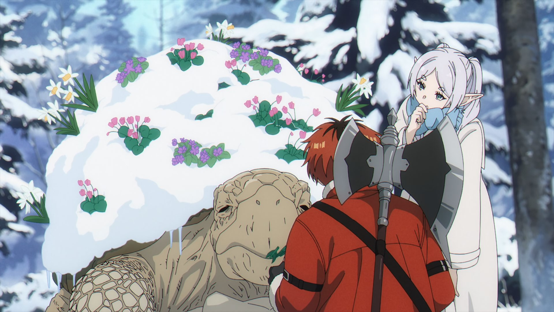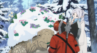 There’s not much to be said about this sequence, really, except that it’s classic Sousou no Frieren. The “icicle cherry tree” was lovely, so was Frieren’s talk with Stark in its shadow, and seeing her play mother as best she can is quite impactful. She learned how to care from the ones who cared for her as no one else had. And while Frieren seems dispassionate and distant, it’s been obvious for a long time that those ten years changed her more than her other 990 (or however many it is) combined. This is a good mode for the series to be in – let’s hope the myriad major changes about to happen don’t throw it off its game.