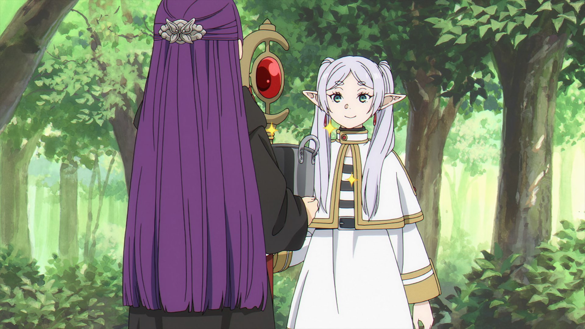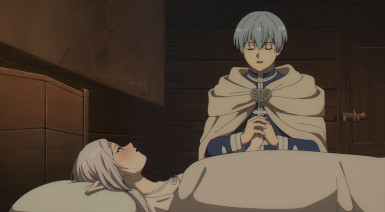 This starts with Sein, and while his departure was hinted at in the mid-finale and effectively confirmed by the aforementioned PV and OP, it still sucks. I imagine we’re going to see Sein at some point in the future, but I felt that his was an extremely positive impact on the chemistry of the cast. Sein was blunt spoken and saw things from the perspective of a jaded adult. That meant he could call Fern and Stark out on their teen nonsense (“Start dating already!”, indeed). He could tell Frieren things she needed to hear, too, things which Fern and Stark would not either because they lack the experience to see them or the stature in their relationship with her to share.