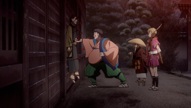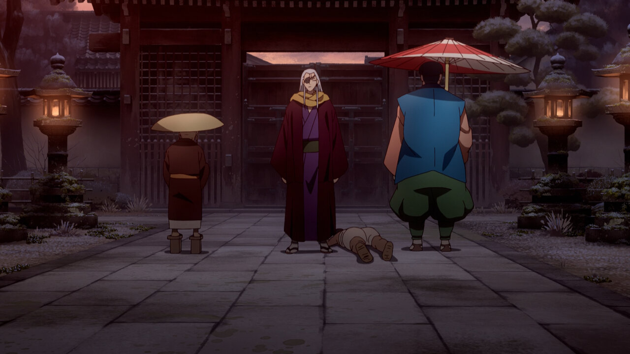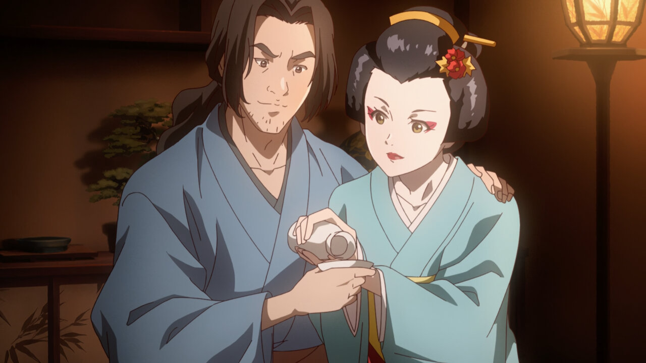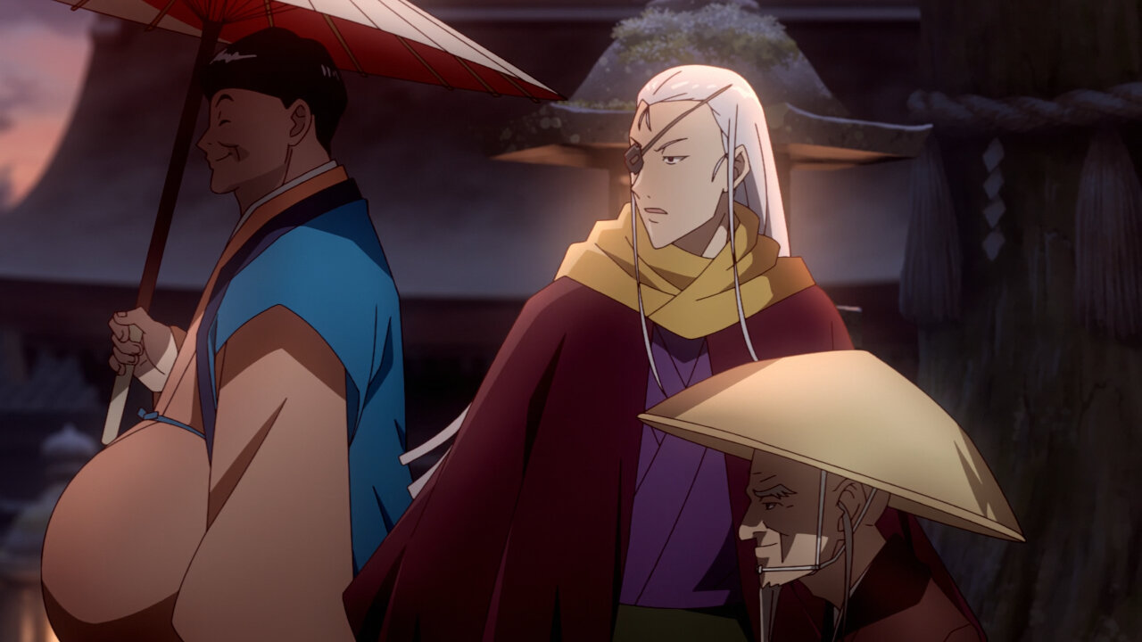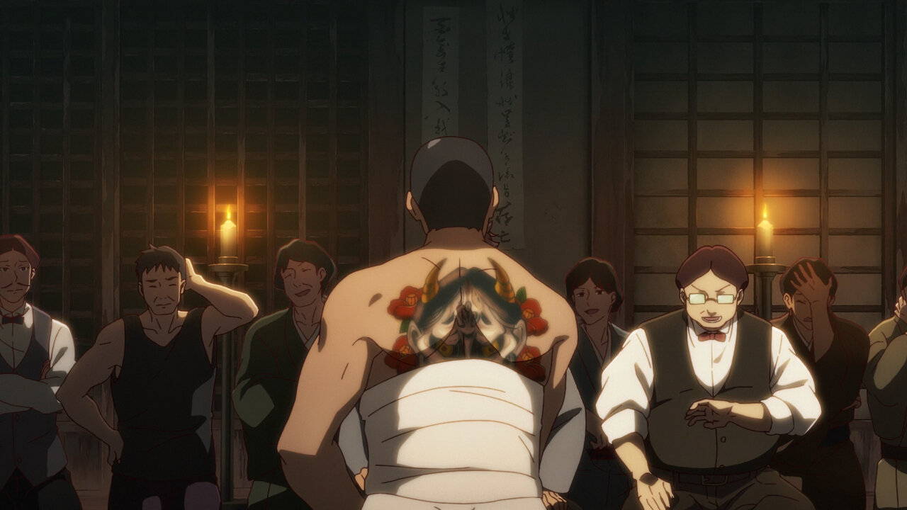 The Sumire-Origasa-Meiji government is only just one part of the story. We also have Kyoushirou Shuragami (Mikami Satoshi)who shows up at the gambling den. Not sure what his deal is, but he has a sharp eye, catching the dishonest game-master red-handed. It doesn’t seem like he came for money, turning down the hush bribe offered, then leaves shrouded in mystery. He’s got some pretty bizarre friends there- the Buddhist monk with the hallucinogenic incense, the Catholic archer girl, and the guy with the knock-out punch. Again, we don’t know what their angle is, whether they’re acting on their own self-interests or part of some underground force, but they add extra color to the cast of characters.