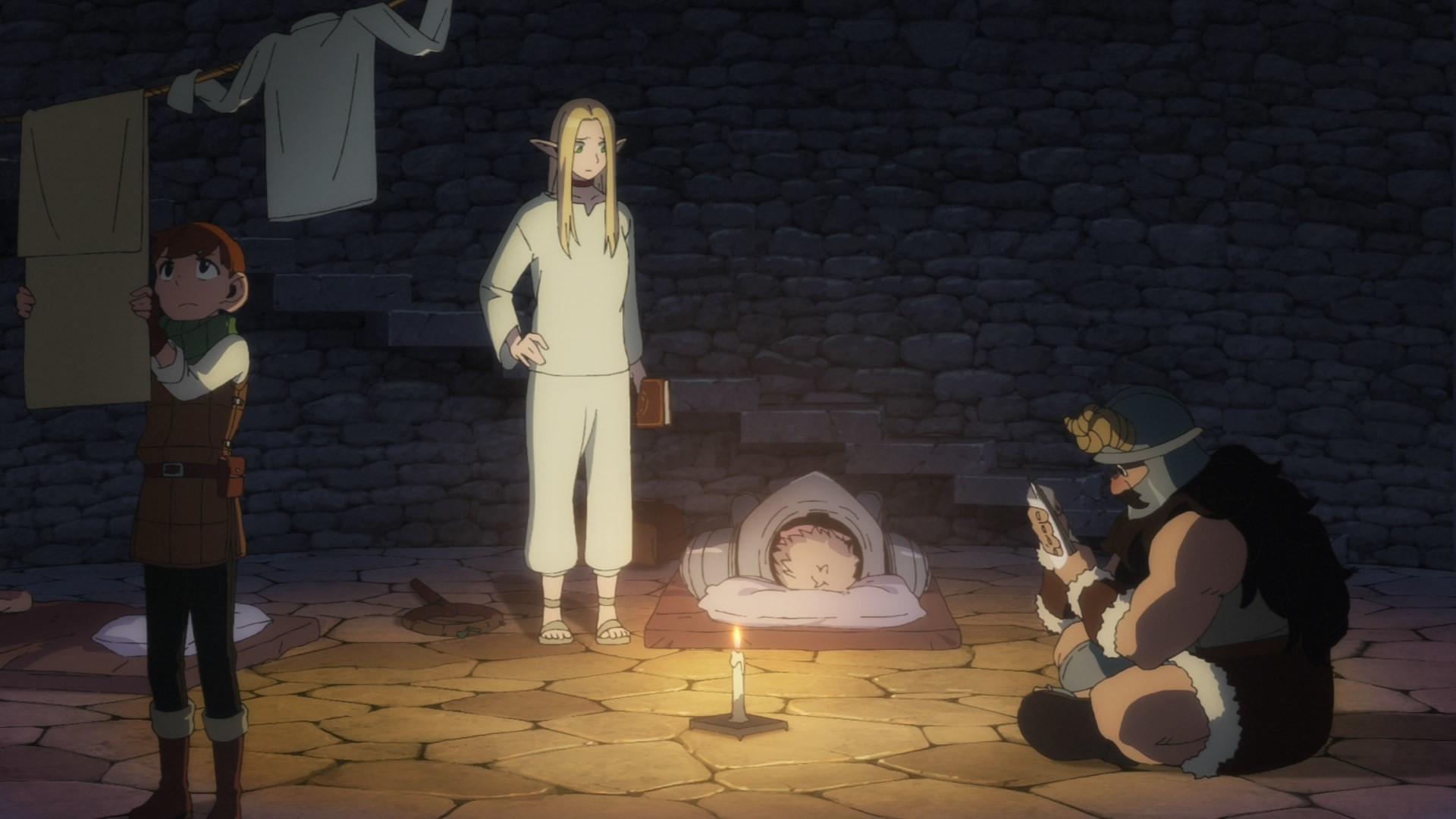 Falin has an important role in shaping Marcille’s path, clearly, above and beyond their connection to Laios. Whether Chil’s suspicions are correct or not, Marcille was pretty much a know-it-all. And it was Falin who showed her that she didn’t know nearly as much as she thought she did. And gave her probably her first exposure to a dungeon – full of spirits and “stale” magic – and the idea that all its inhabitants were critical for its ultimate survival. There’s obviously some important connective tissue between where we leave them here and where we met them in the premiere, but no question this was an important milestone in Marcille’s life.