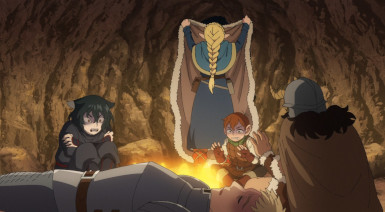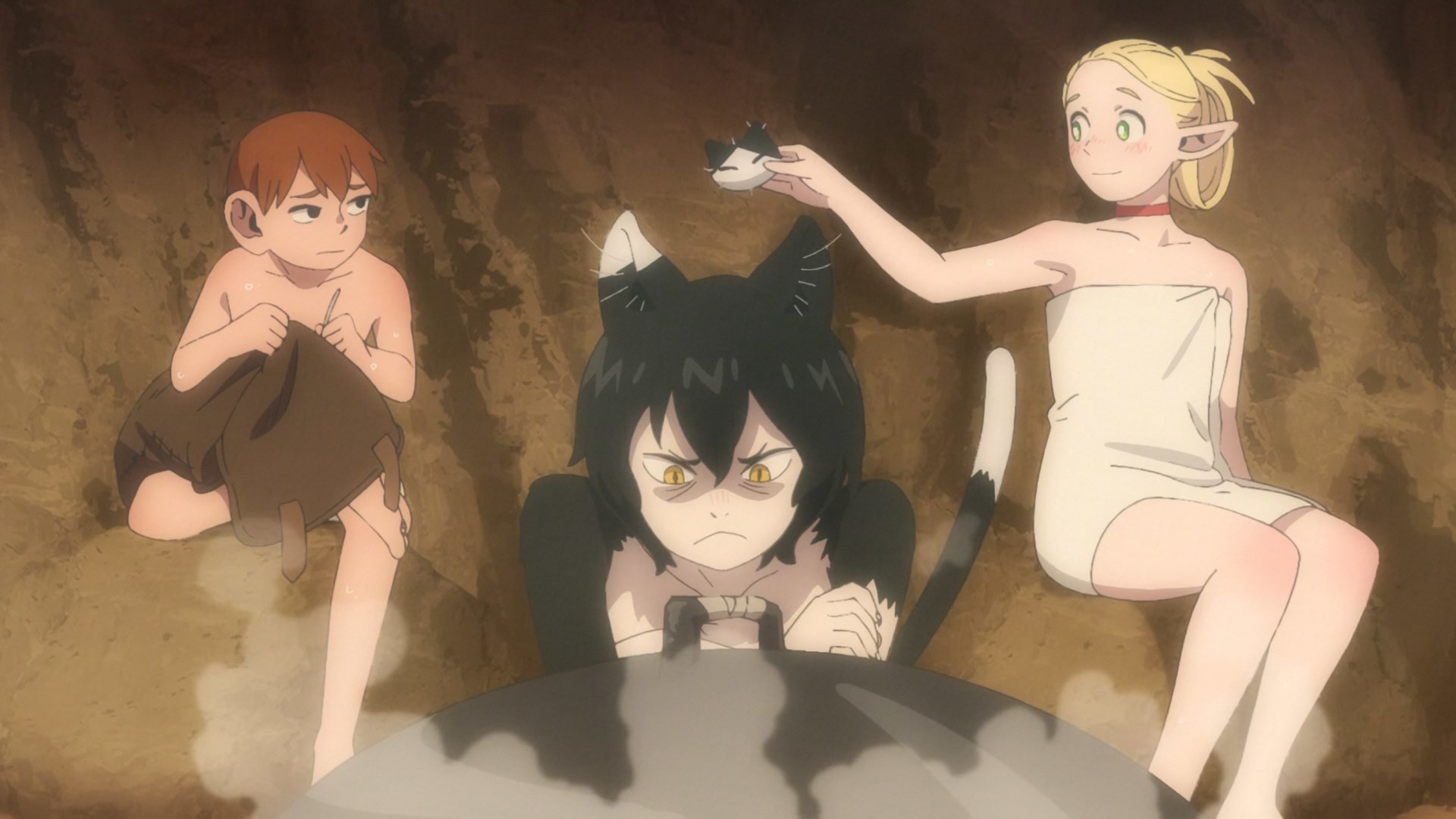 Because Izutsumi is theoretically a monster herself, Laios has to be blindfolded when the group have a steam to warm up (the temptation would be too much for him). After an encounter with a group of dire wolves, Izuttsumi has her arm broken by the bite of one of the beasts – after she’d bolted, leaving the others to fend for themselves (Marcille saves her anyway). To say the catgiirl is a work in progress socially would be an understatement – she’s a scouring pad coated in Ajax. But in narrative terms, in this group her role is the irritant in the oyster.