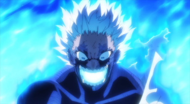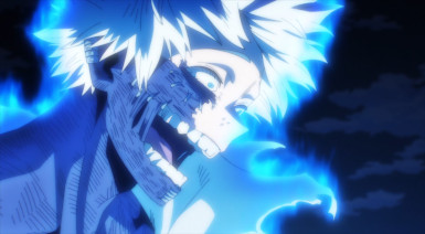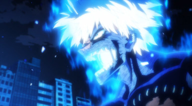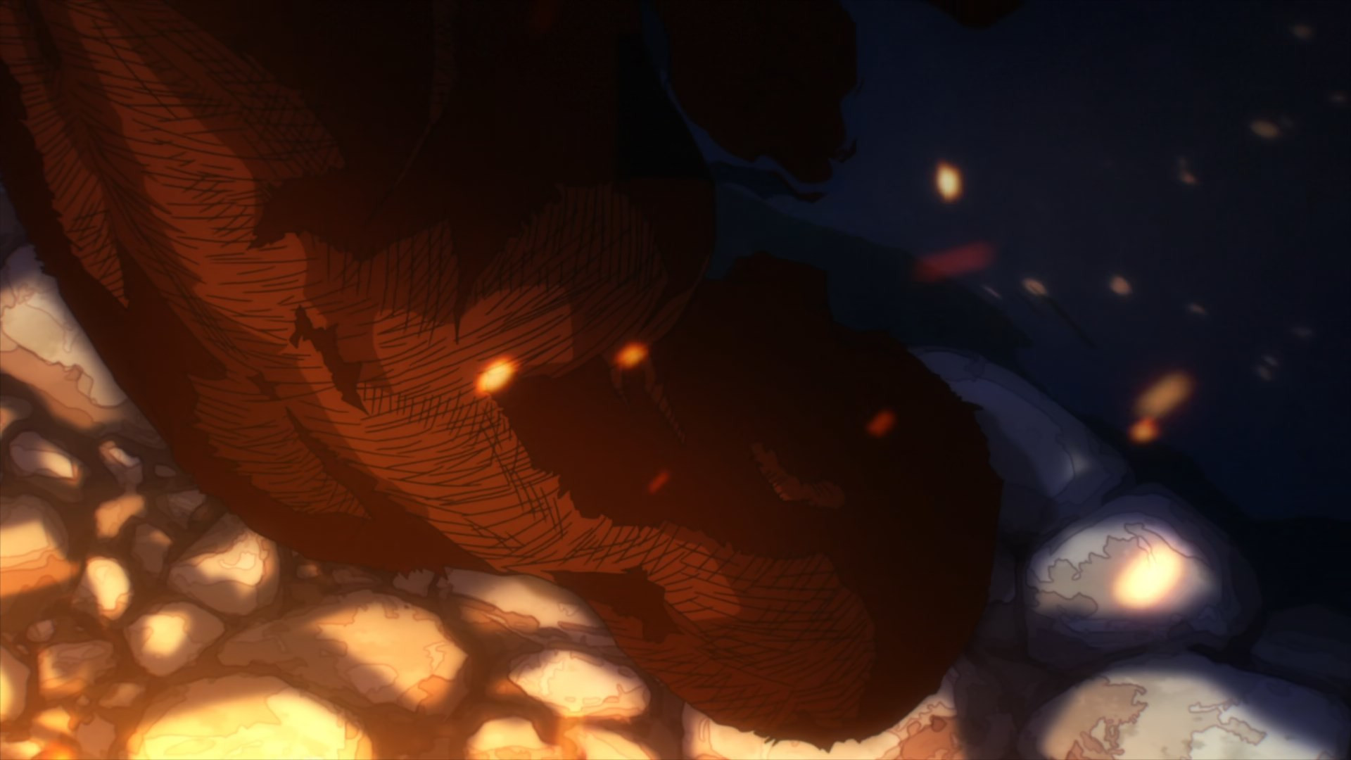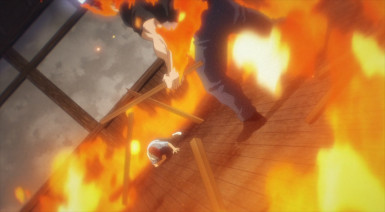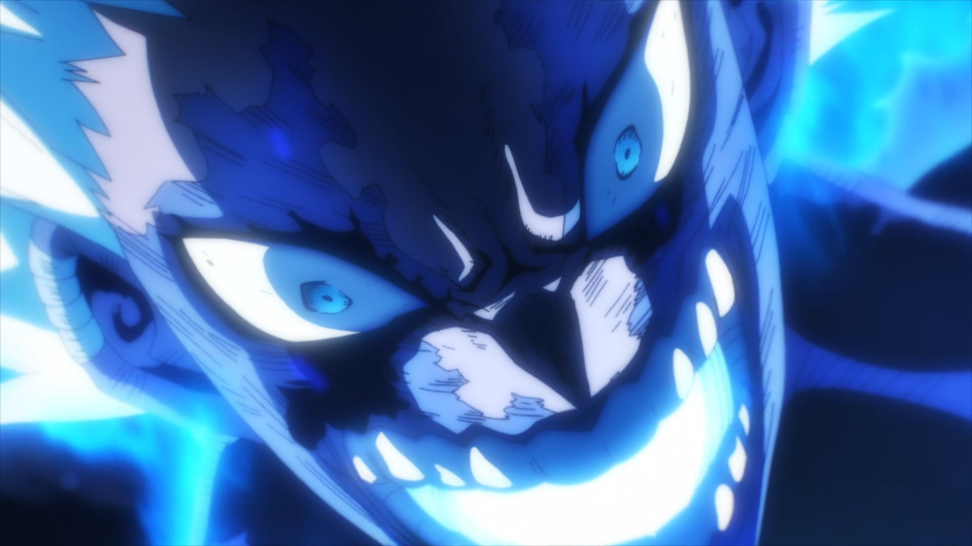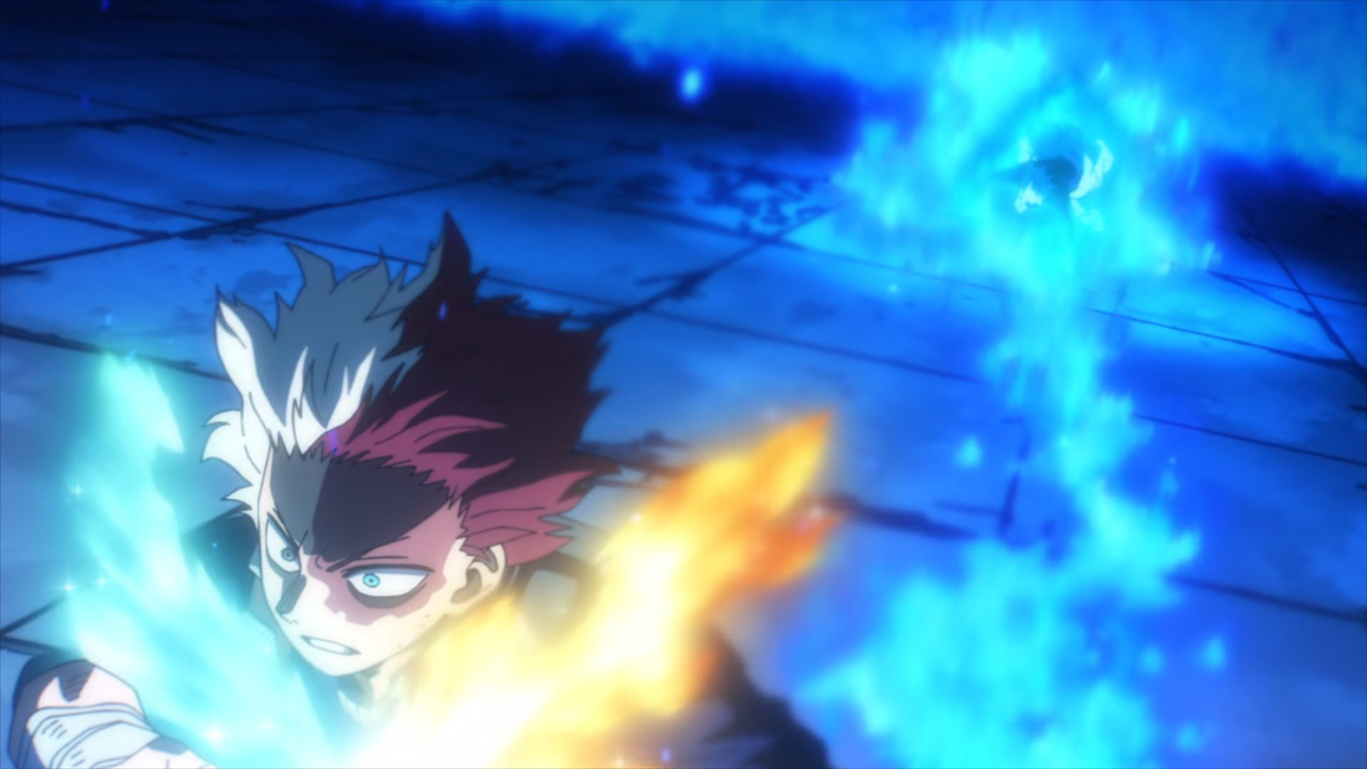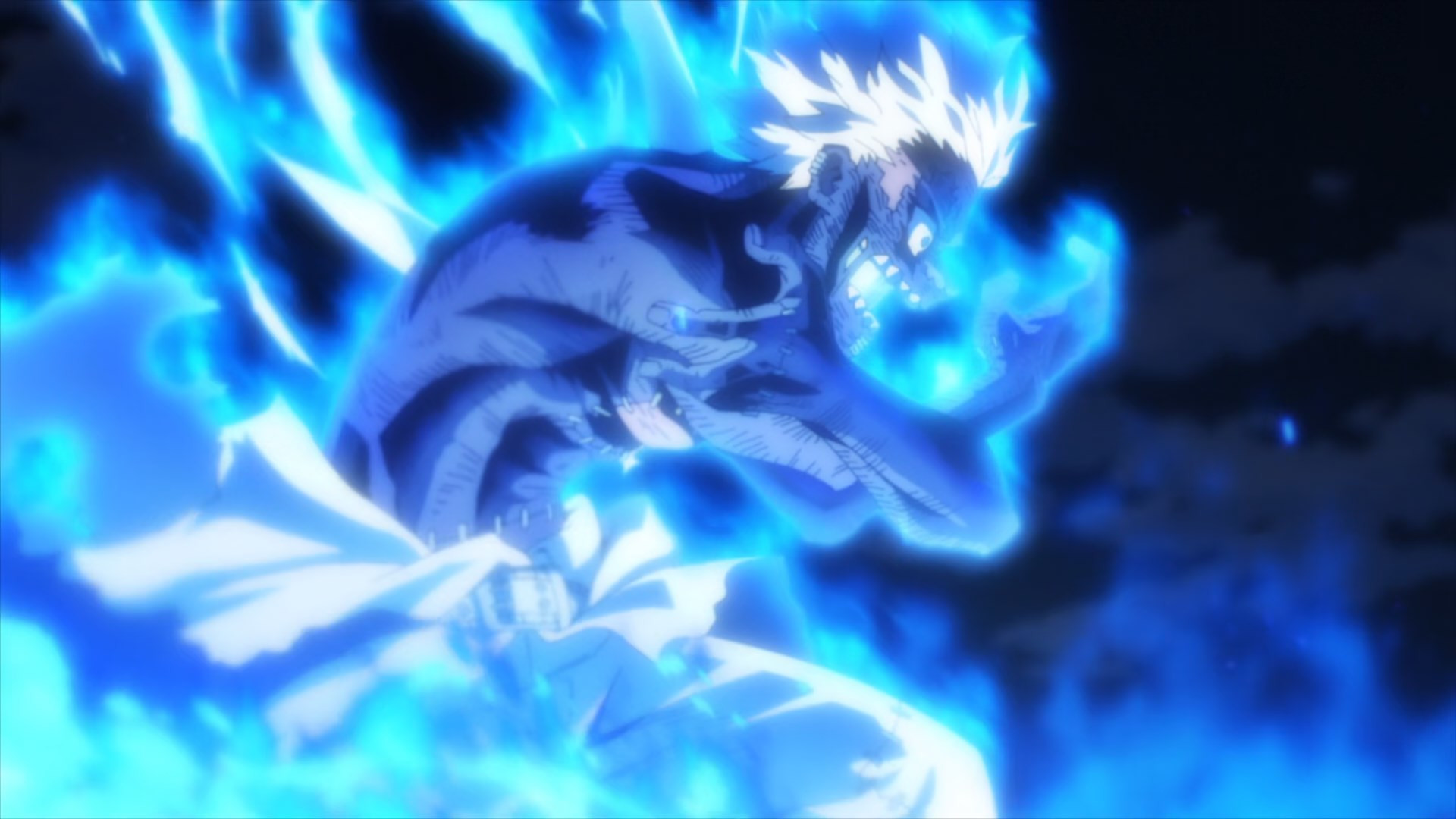 This is a hell of a battle – intense and heavy with Dabi’s intense hatred hanging in the air. If Bones is having any production issues because of You’re Next they aren’t apparent this season or in this battle, which they really do justice to. It’s all going to come down to that ultimate move and Flashfire is something we know from Endeavor of course, but both his sons have their own twist on it. What Shouto has come up with for Touya is “Flashfire Phospher” – building to “Great Glacier Aegir“. With this, his cold flames seem to completely extinguish Dabi’s Blueflame – but is it really over?