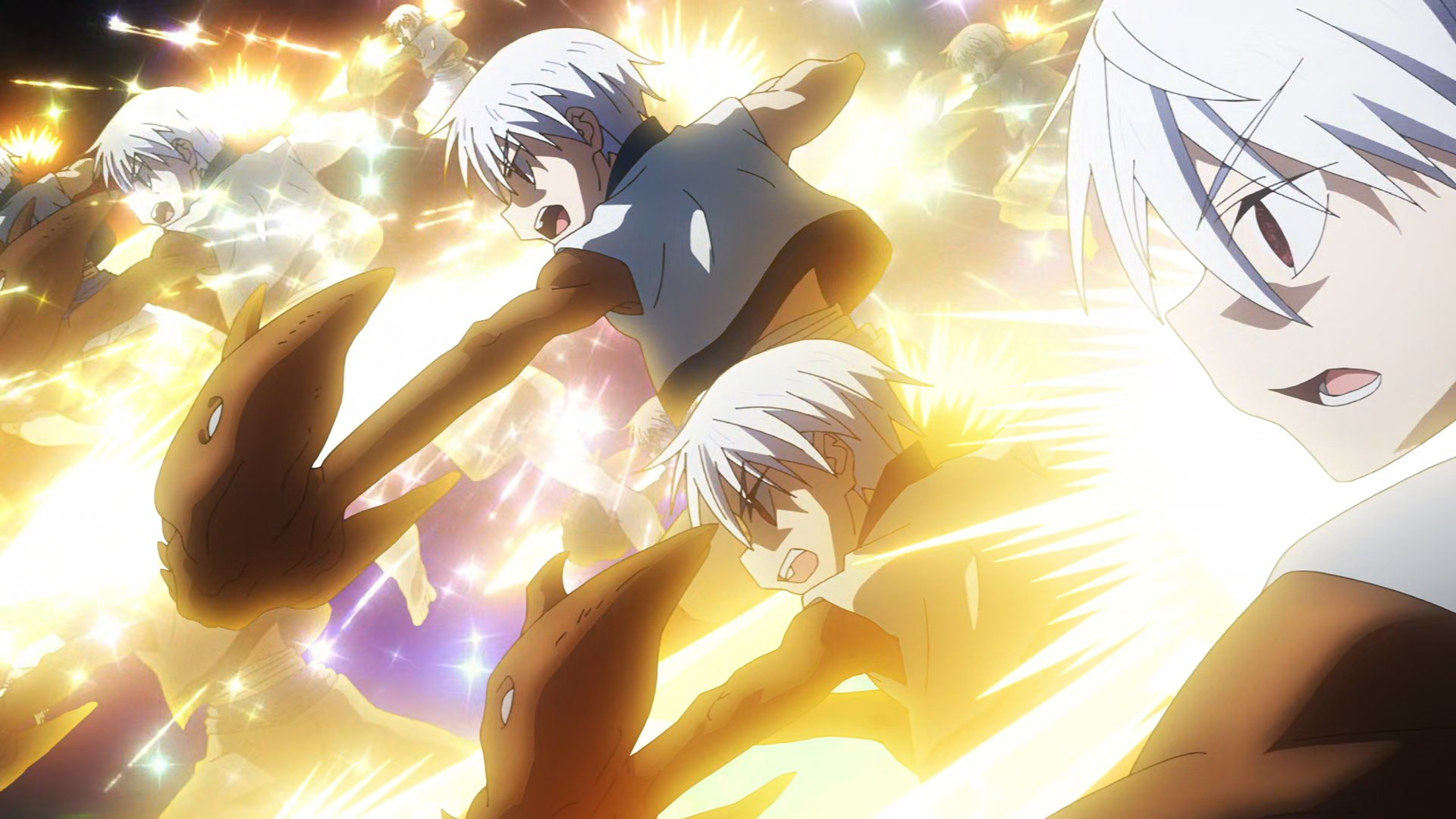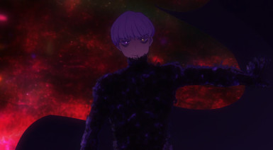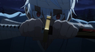 Is the blade Senya wields imbued with the soul of Ashikaga Yoshiteru himself? That’s certainly what’s implied. Whatever the case, Teru gives the boy the strength to beat the five at their own game. He turns the table on then – instead of 5-against-1 it’s “1,002-against-5”. Cornered the five – the two of them that survived, anyway – reveal something of the truth about themselves. They’re the Tribe of the Void, and come from the distant past – journeying across time to save their race. There are two “spiritual singularities” in this world – Senya and Jinka Yamato – and somehow, they seem to be critical to the plan to save the Tribe of the Void. Also, they refer to Senya as their descendant – which explains the hair color.