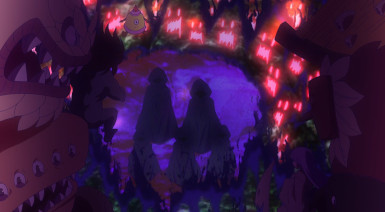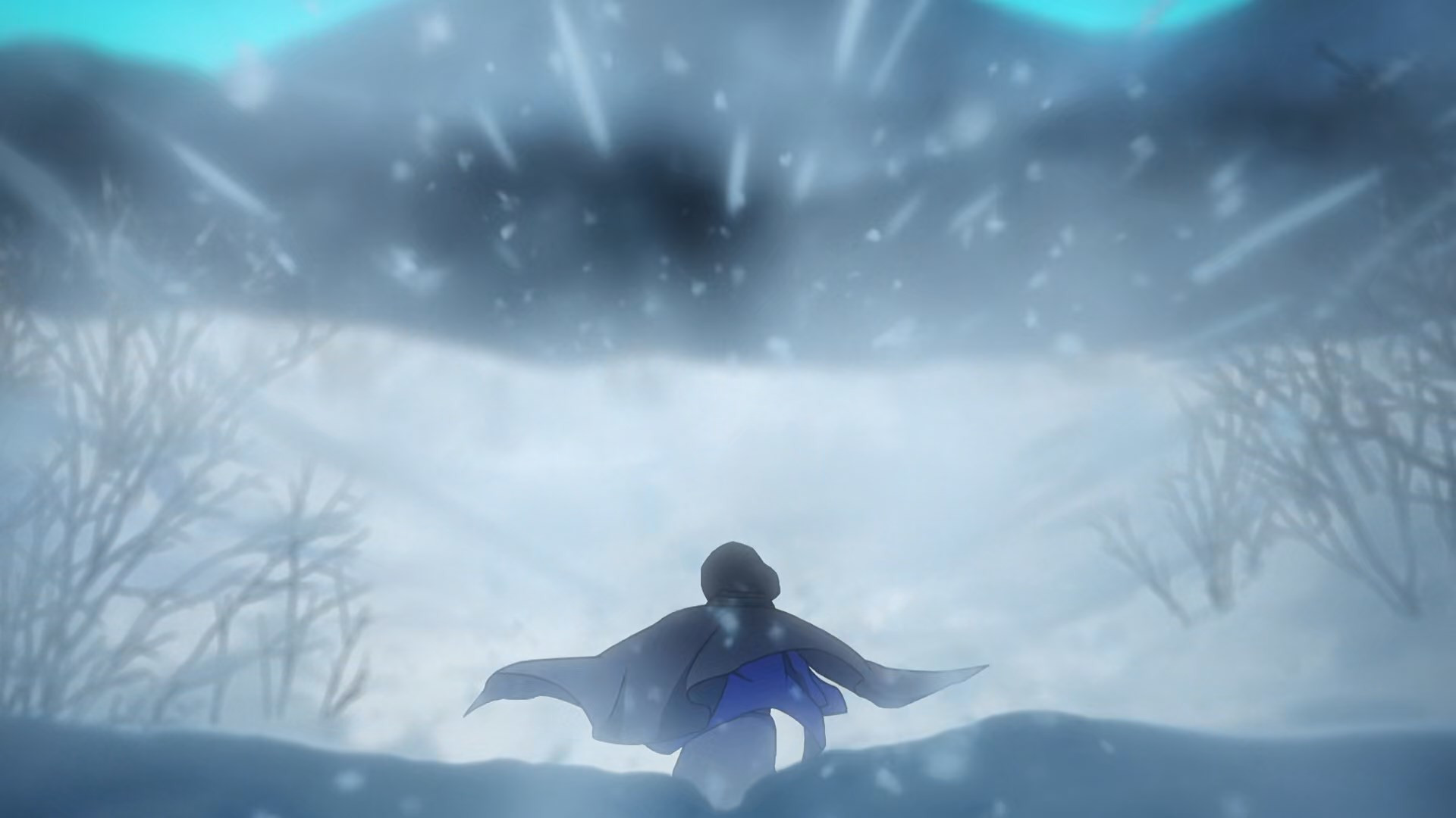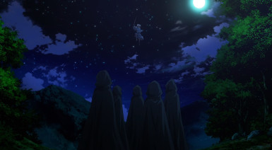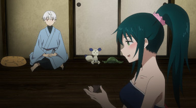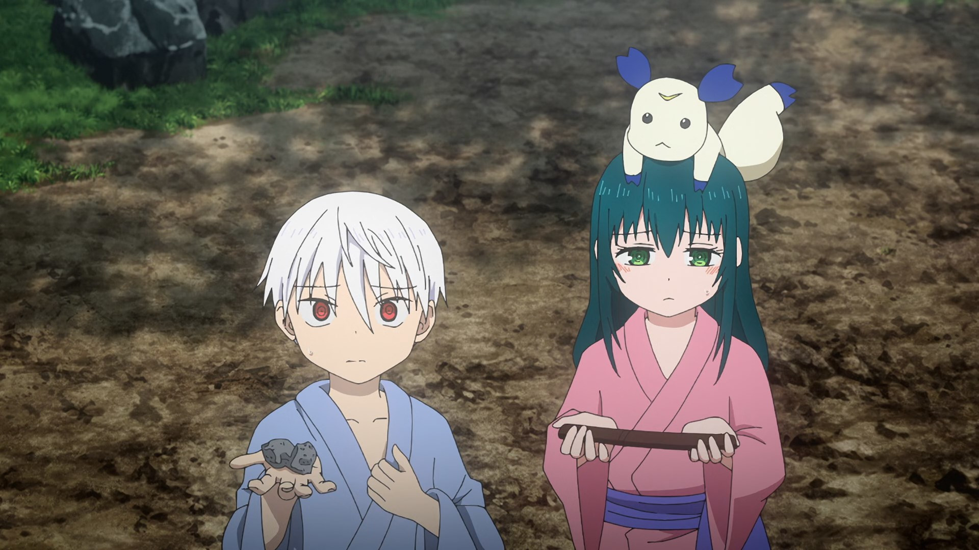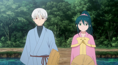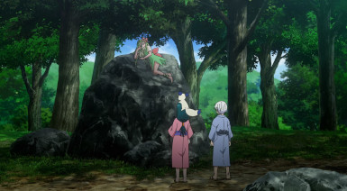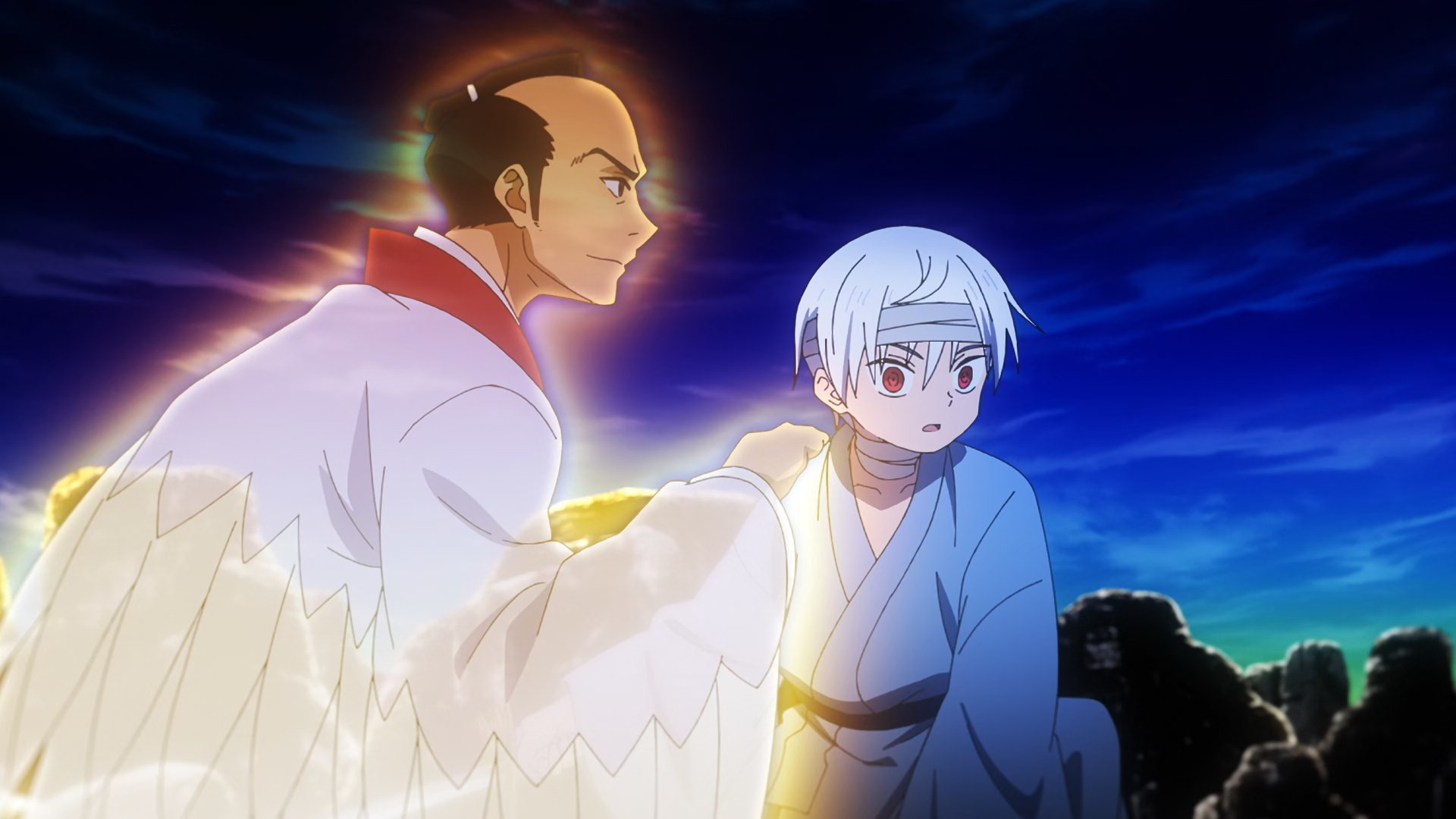 Clearly, this is a battle deferred, not a battle won. And that looming over him, as well as the matter of Jinka Yamato, Senya – with Tsukiko in tow – asks Hanatora to train them so they can face those challenges. They don’t have much in the way of payment – the Goddess ominously says she’ll think of a price “later” and orders the kids to do twenty laps around the village. She also tells them their training will take about 20 years, which proves rather a shock. We don’t jump ahead quite that far – only eight years – but they’ve had a profound impact on the key players (except Nau of course).