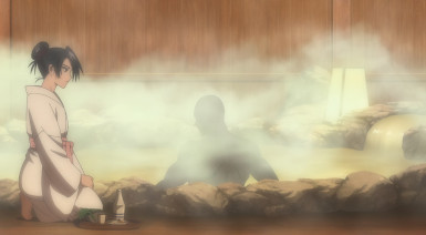This is all prelude to the first meeting between the two hitoriki, the light and the dark. Many were (and new viewers are, no doubt) surprised that Shishio and Ken would meet so early in the story, But this is a long dance between the two of them, and these are merely the first steps. Shishio – enjoying a soak in the healing hot springs with the beautiful Komagata Yumi (happily, played by the superb Tomatsu Haruka) – sends Soujirou Seta to greet his two guests. Soujirou was the one who assassinated Ookubo and of course Kenshin knows this, but he presents himself unarmed and professes to be there only as a guide.
