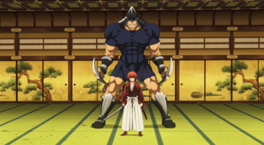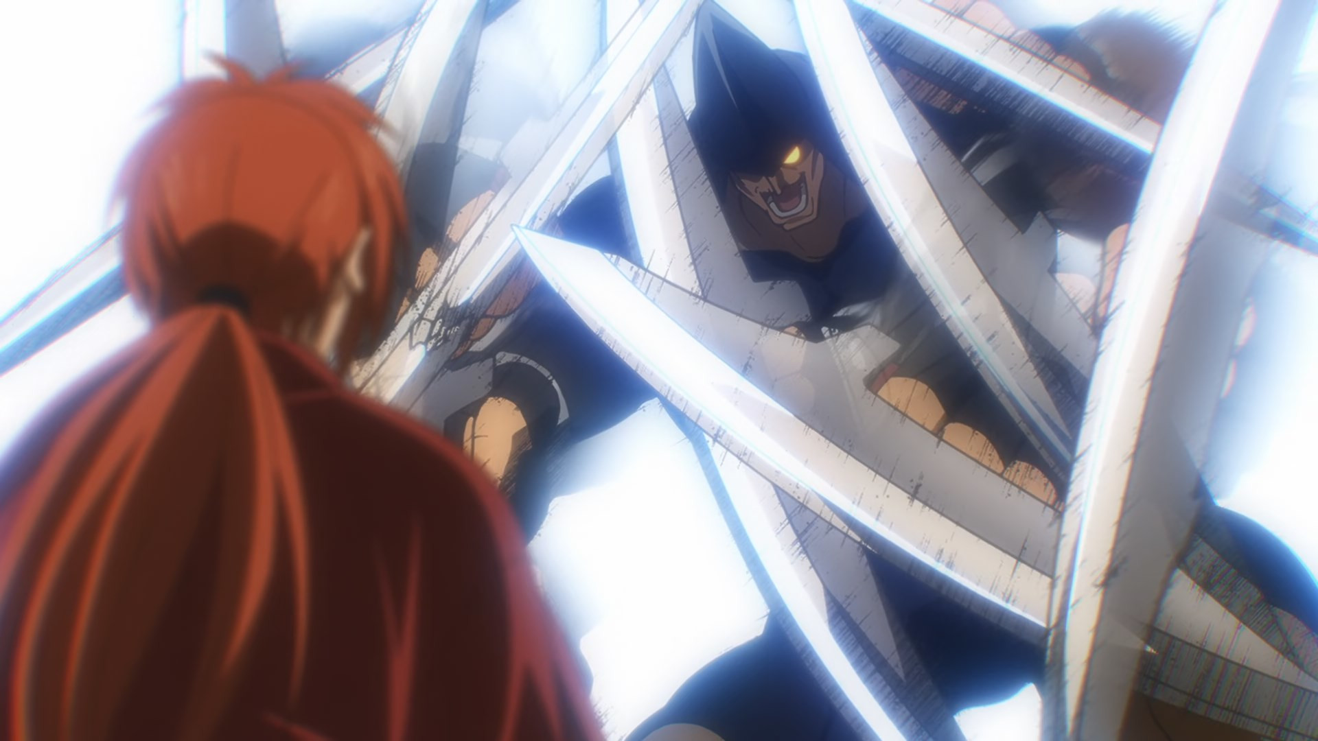 Make no mistake, Senkaku is a sacrificial pawn. Kenshin is a mystery to Shishio, a man about whom he knows disturbingly little. Can the hitor iki, in obscurity for a decade and supposedly now living as a peace-loving ronin, still be the fierce Battousai of legend? That’s what Senkaku is supposed to reveal, but Kenshin is only too aware of that. He lets the oversized bullethead slowly weaken his own body, revealing one of the Hiten Mitsurugi techniques – hell, merely drawing his sword – only at the very end, the fight a foregone conclusion.