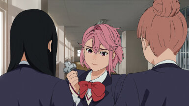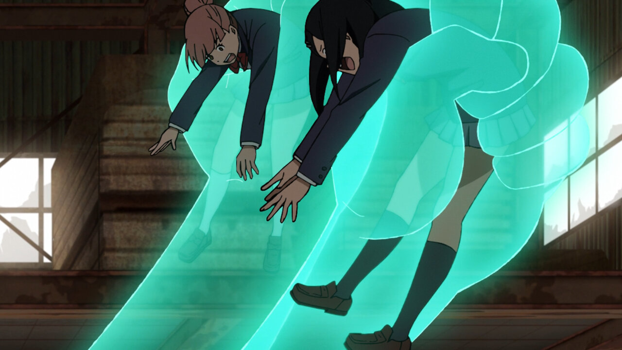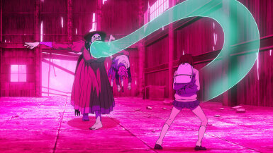 Okarun’s family jewels don’t stray too far from home, picked up by Aira. Spiritual powers in the hands of a delusional teenager is a dangerous thing indeed. Drunk on her newfound abilities and giant-sized ego, Aira takes it upon herself to exorcise the evil in Momo and Momo’s “familiar”. Which is really just gussied up bullying.