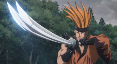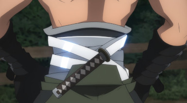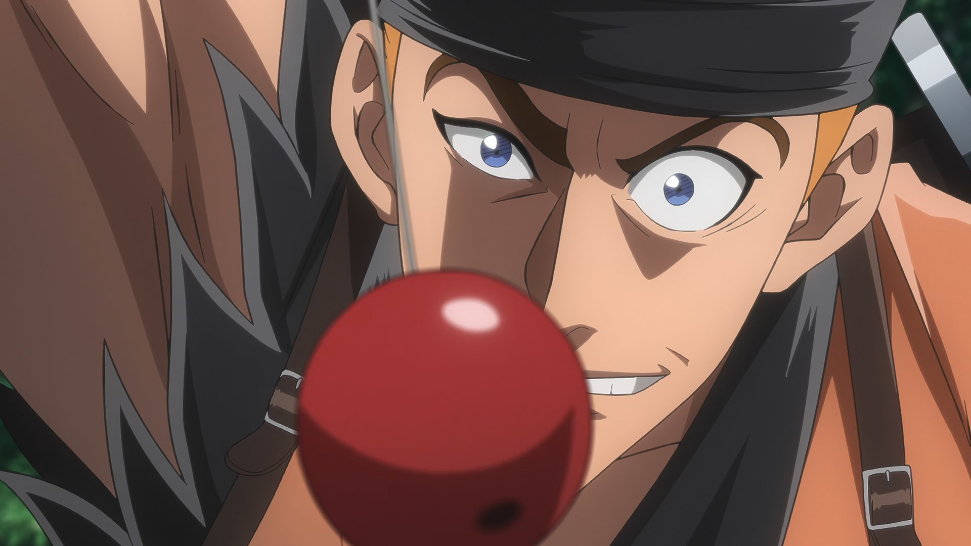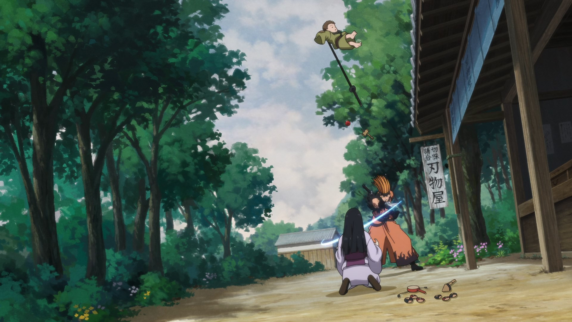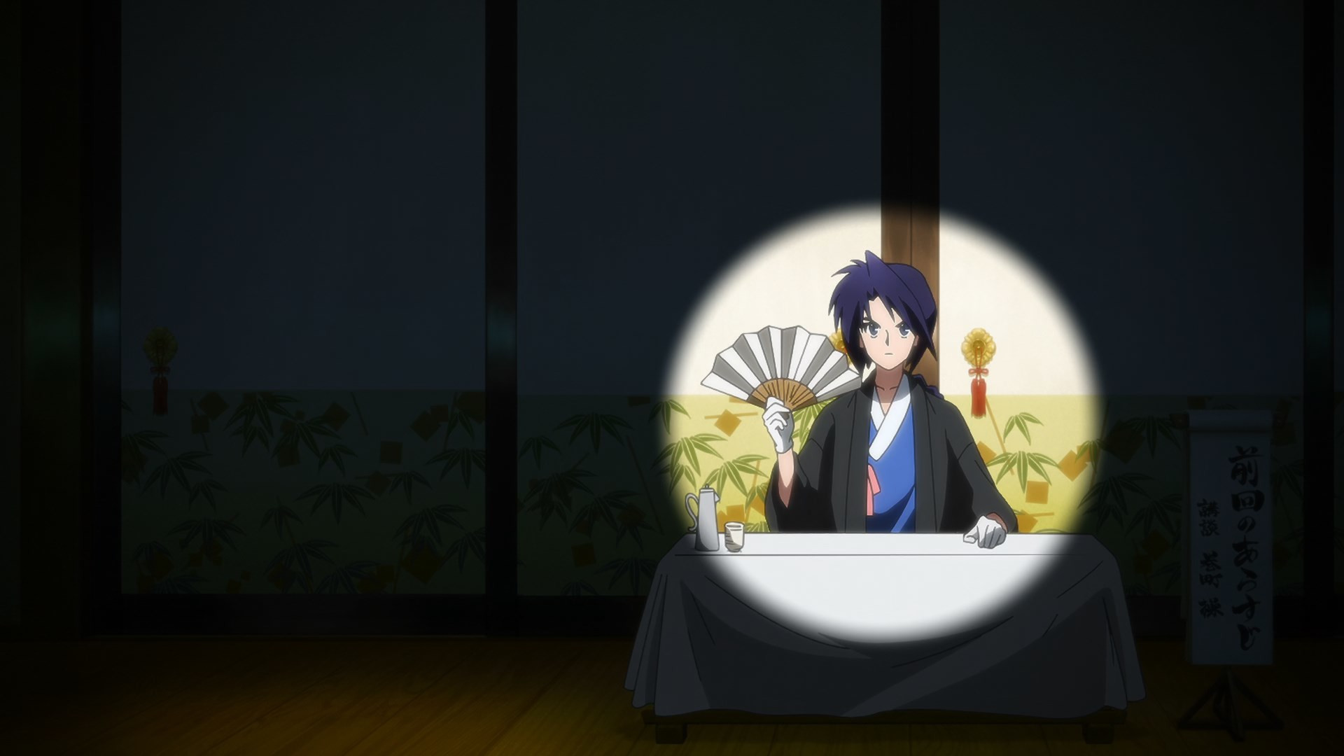 There doesn’t seem to be too much mystery with Sawagejou Chou (Okamoto Nobuhiko, continuing the usual suspects casting pattern). An Osaka boy, he’s the first to arrive in response to Shishio’s summons. “Chou the Swordhunter” seems to be all about just that, swords. He clearly has skill with the blade (as he demonstrates later in the episode) but he’s also a serious sword otaku. And when he hears from Houji’s spies that one of Shakku Arai’s katana was left behind, Chou determines to head out to Seiku’s shop and claim it for himself.