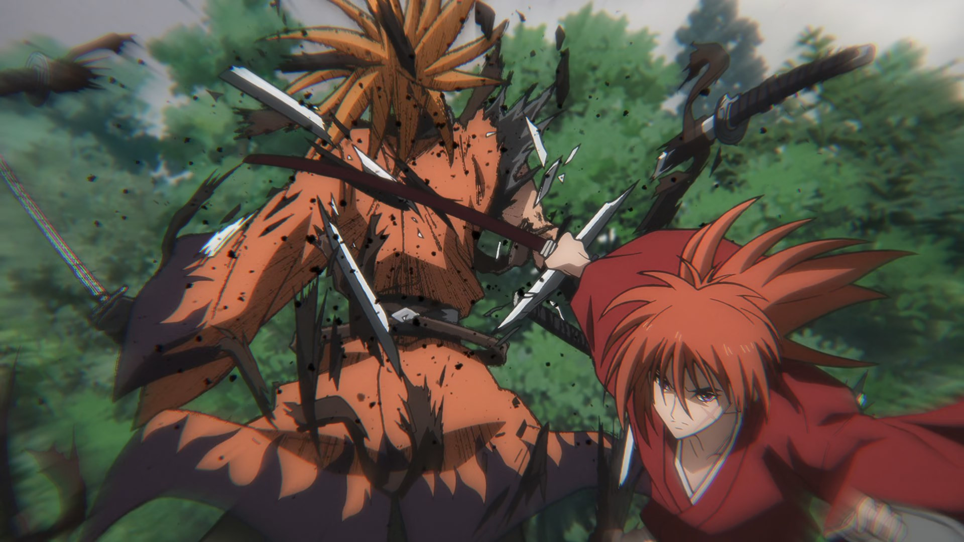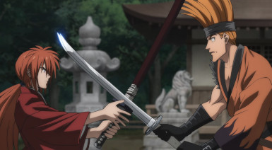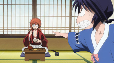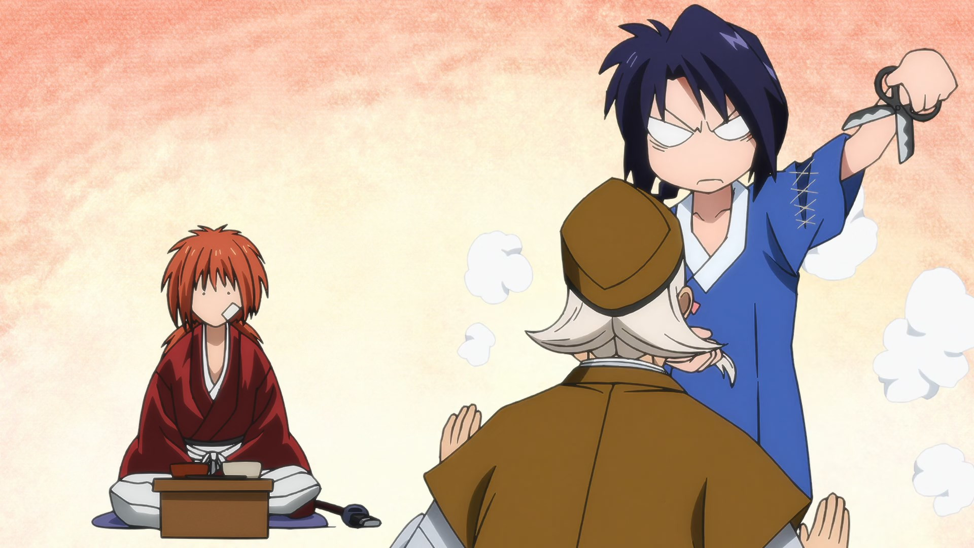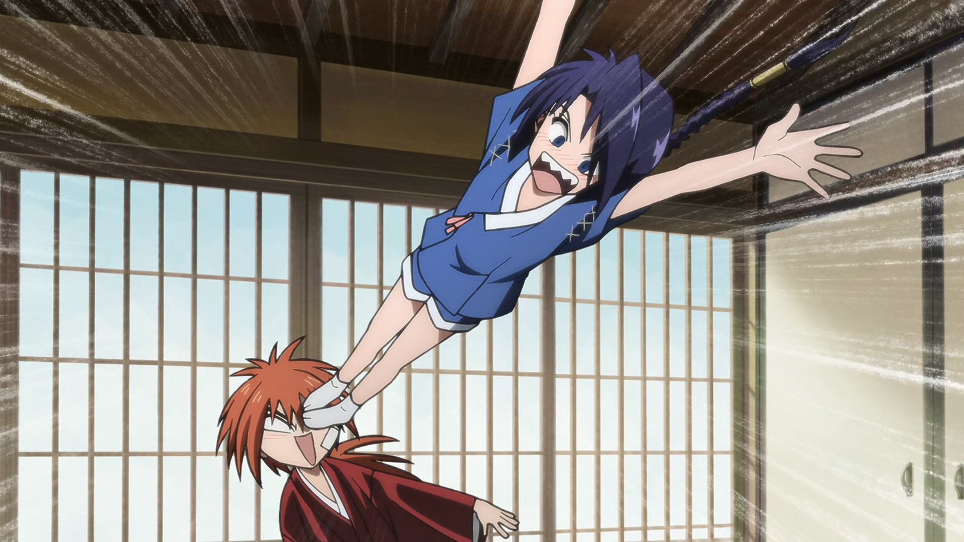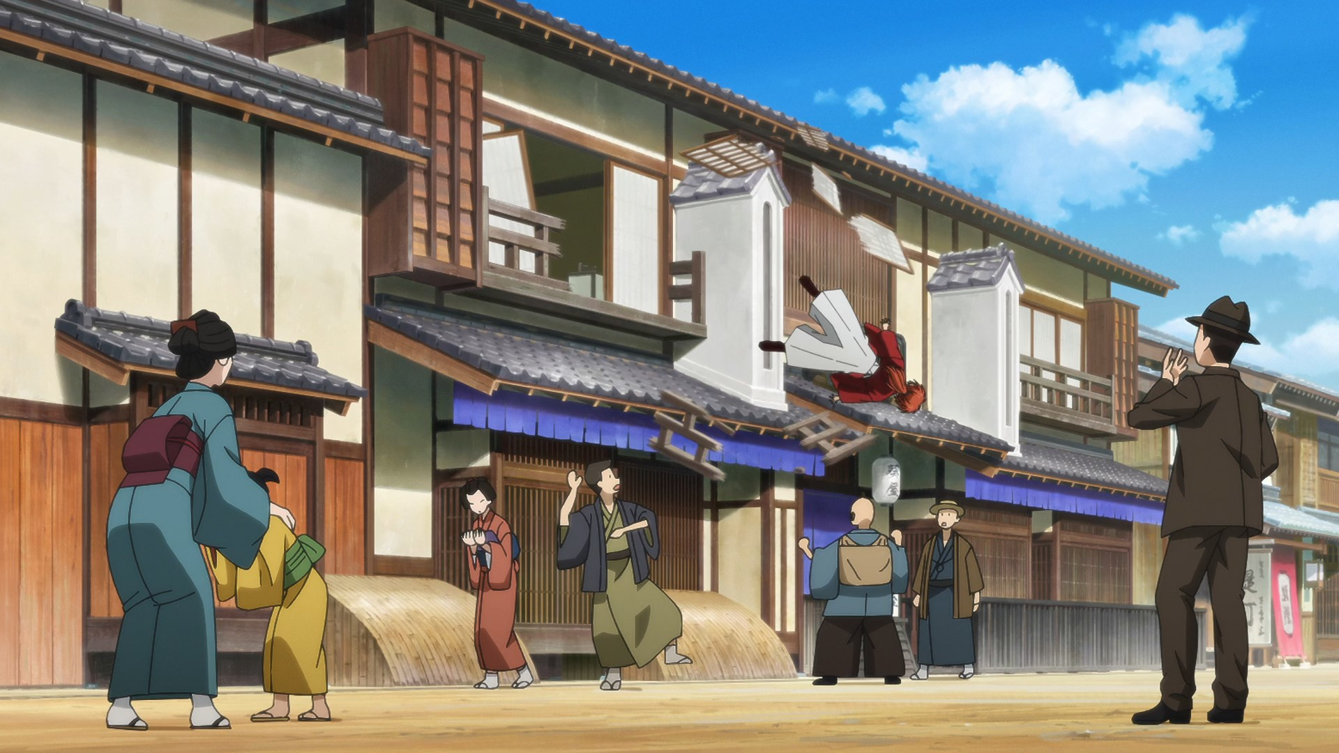 Misao (who provides a rakugo-style cold open this week, an affectation I don’t remember from the first anime) is meanwhile berating Kenshin for not bullying Seiku into making a sakabatou for him (though Nenji tells her in no uncertain terms why it wouldn’t have worked). Frankly Misao starts to get on my nerves after a while (as she always has) – she’s better in modest doses. But she does play a critical role here, as she decides to try and convince Seiku herself and winds up observing what’s happening with the Swordhunter. She immediately tells Nenji (using the Oniwabanshuu’s carrier pigeon network) and before you can “Oro!” Kenjin has zipped over to Hakusan Jinja to rescue Iori.
