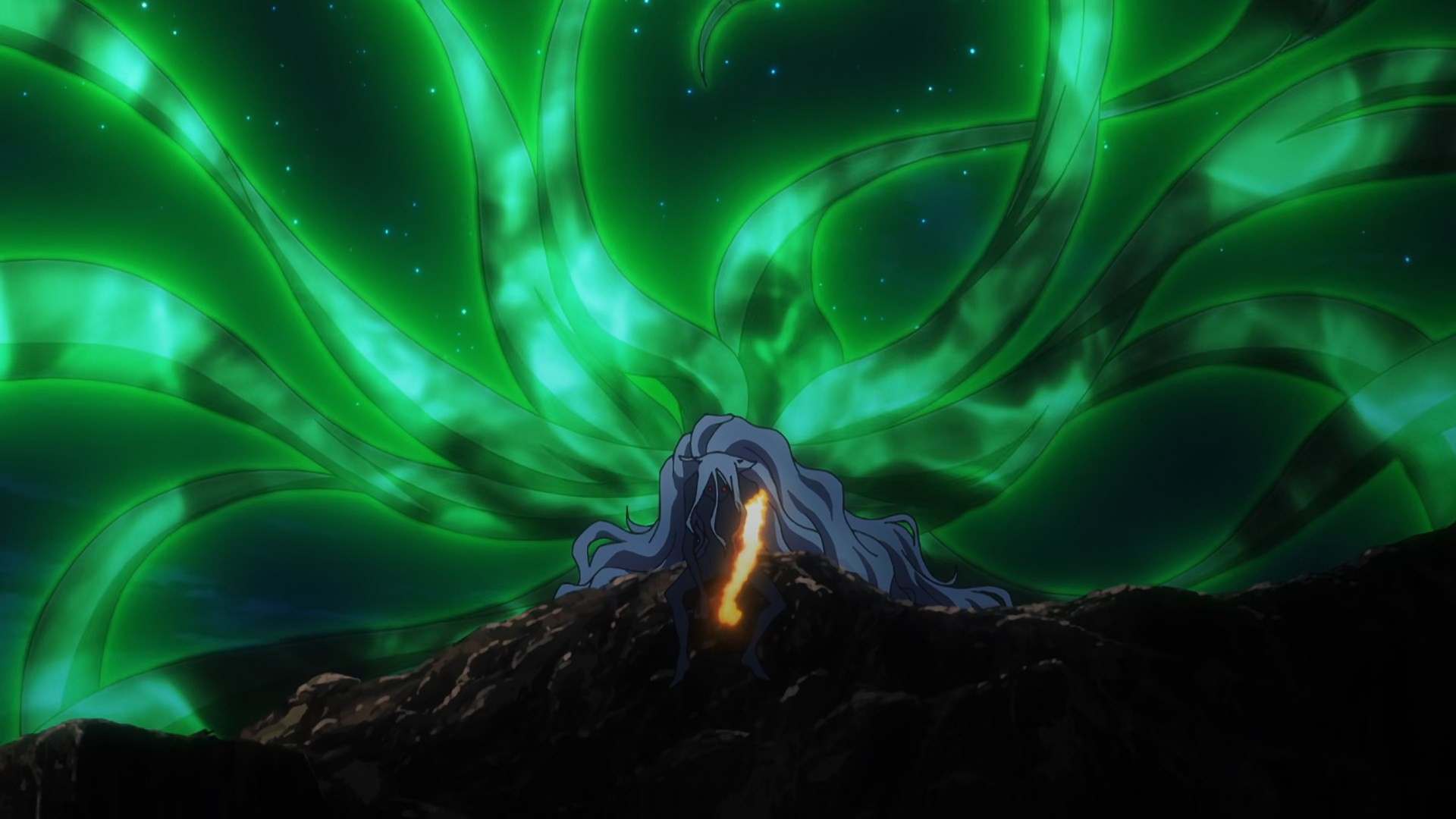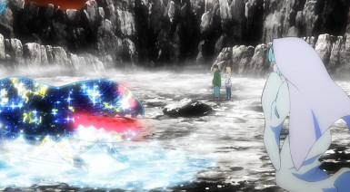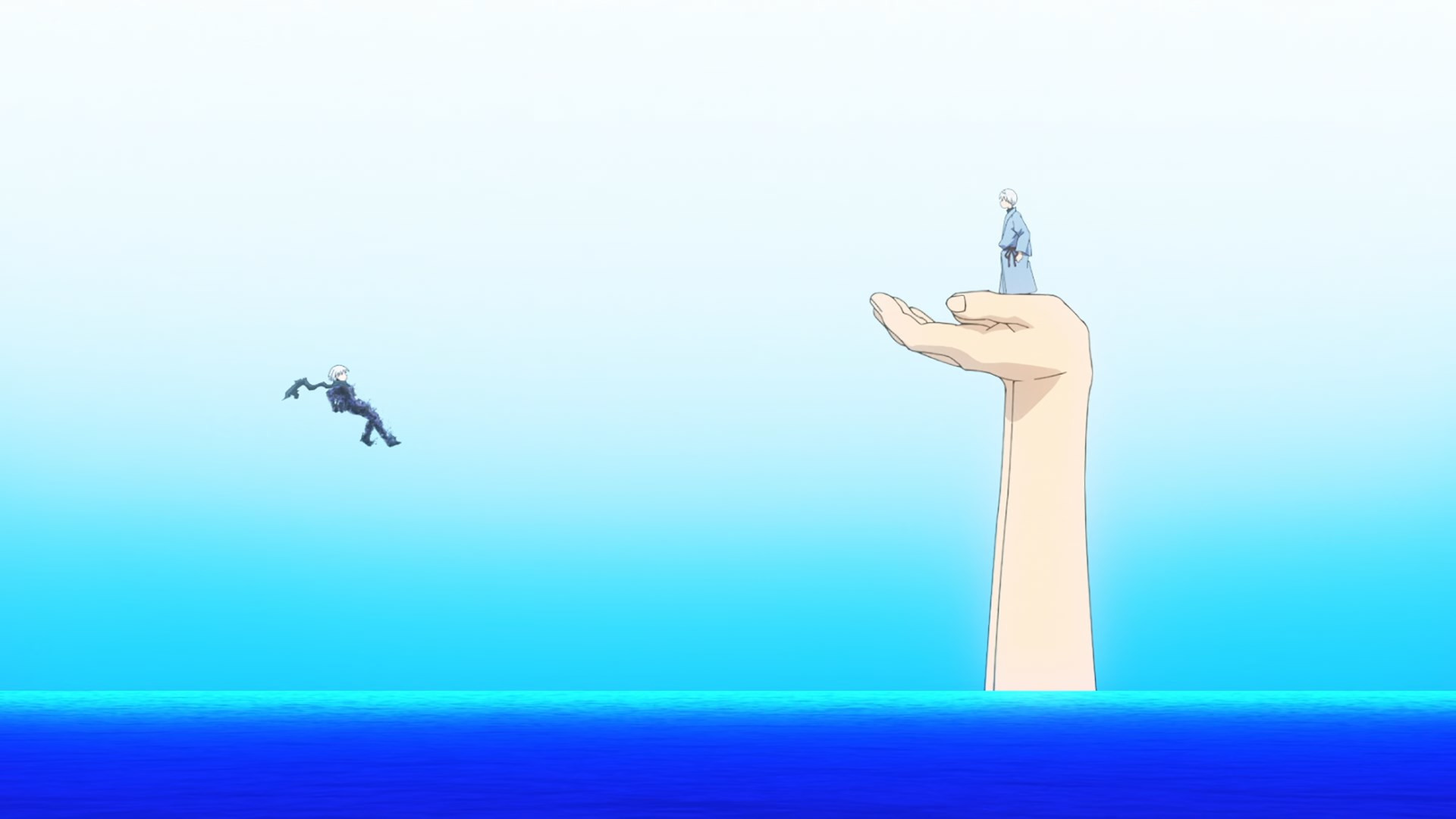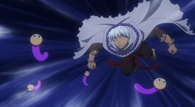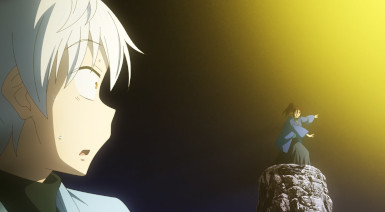 It’s another burden for Senya to bear, but if anyone should be used to it, it’s him. As Shinsuke tirelessly leads the katawara in their resistance, Senya – newly powered up – is free to return to the front. But that’s not Banshouou – it’s the Tribe of the Void that are at the root of all this. Banshouou of course isn’t keen on letting someone actually strong enough to interest him go fight someone else, but even he isn’t able to stop this new Senya in his tracks. Leaving Mudou to deal with the cloud, Senya keeps moving up to face down his tormentors once and for all.
