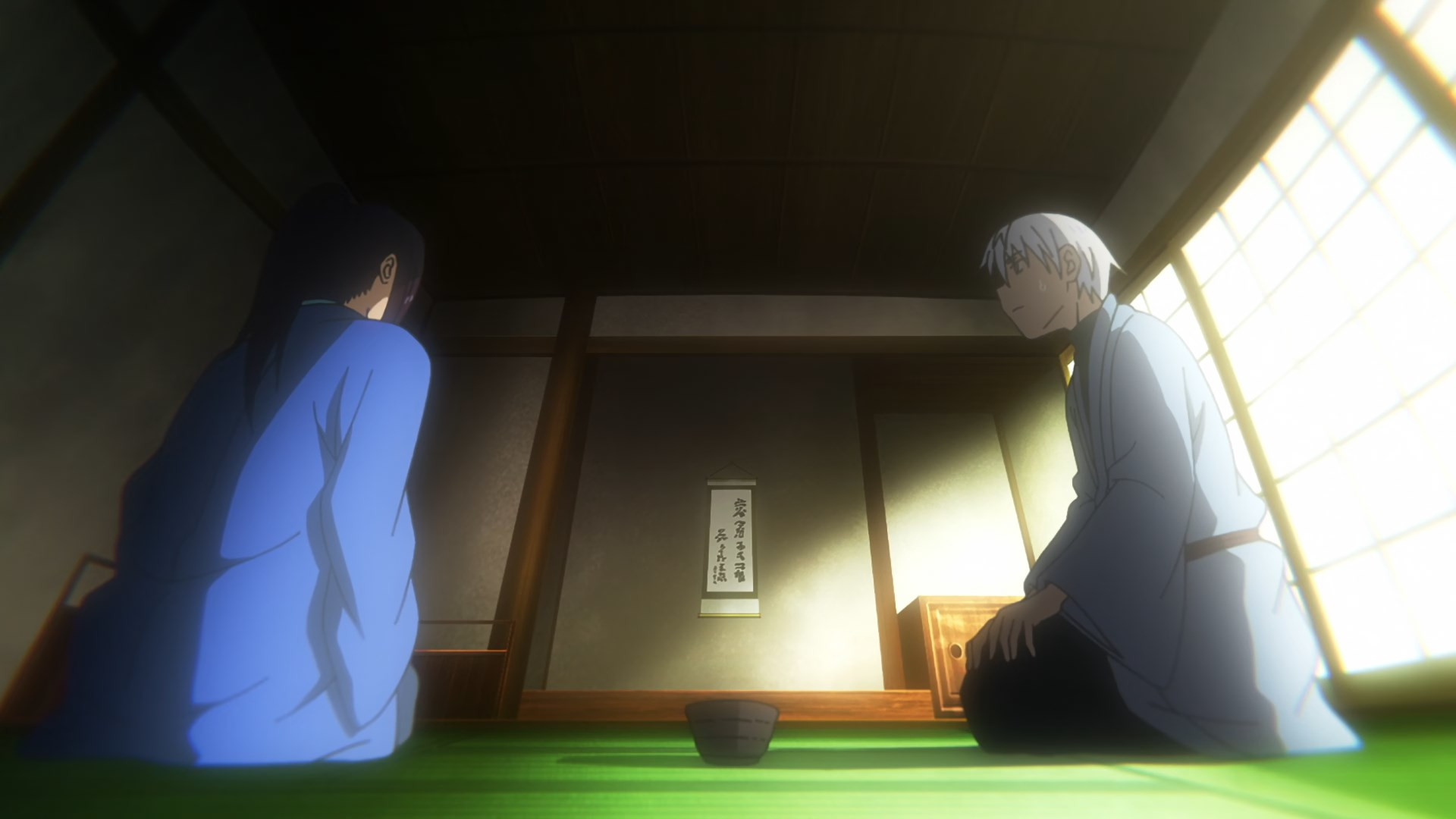 Senya is drawn into the spirit world – and his chibi form – once more, but it’s not the Tribe that awaits him there. In an out-of-place teahouse awaits a handsome young samurai with a familiar voice (that of Saitou Souma). This is Takeru – Yamato Takeru to be exact. We’re heard tell of him of course – he’s Jinka’s heretofore unseen older twin. But the two could hardly be more different in personality. Takeru offers Senya a bowl of tea, then says it’s poisoned, then that it’s not. He then proceeds to try and sell Senya on the idea of saving the Tribe of the Void. He’d have to give his own life, but in order to save an entire country that’s surely a small price to pay.