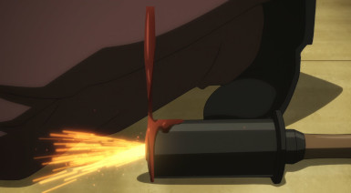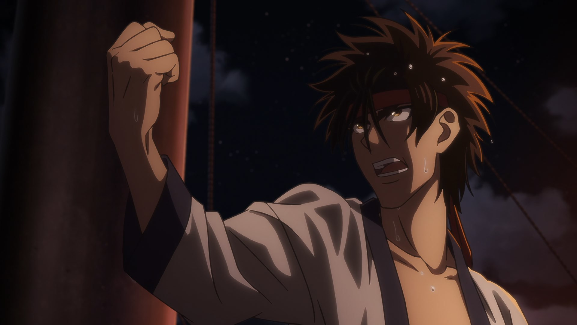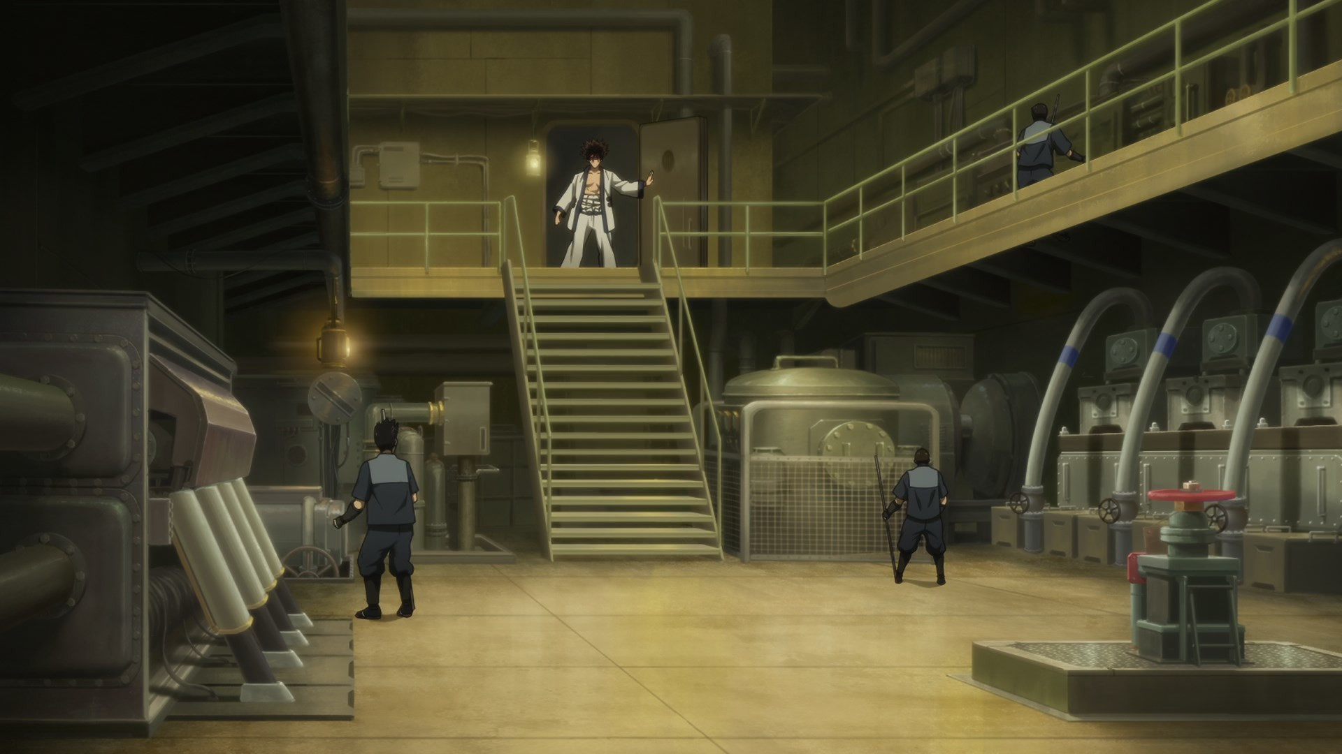 With the fire plan pretty much a bust and the inescapable reality that Shishio has put one over on them, the Kyoto Juppongatana deciding to pack it in for the night isn’t all that surprising. That allows the focus to shift back to the Rengoku, where Houji determinedly uses himself as a punching bag rather then let Sanosuke proceed unchecked. But the blind pig has found his acorn, and Sano enters the engine room – kindly offering the plebs inside the chance to flee. Houji, as ever incredibly loyal and fearless, uses his own thorn-drawn blood to douse the grenade that Sanosuke has loosed. So Sano just uses a Futae no Kiwami to blow ones of the ports apart, setting the ship on its inexorable journey to the bottom of Osaka Bay.