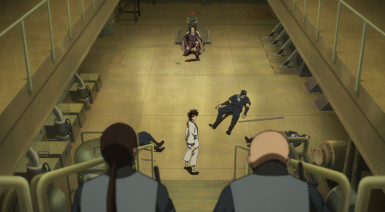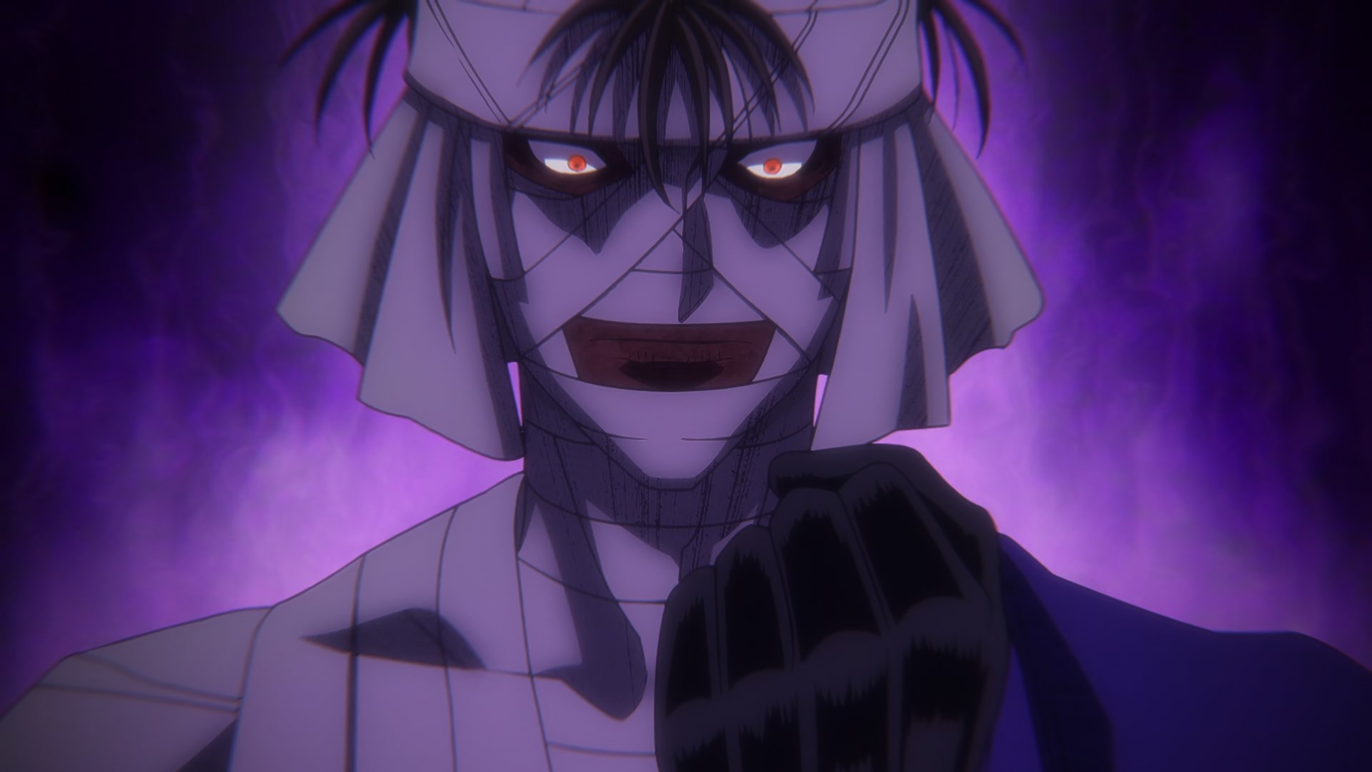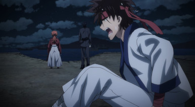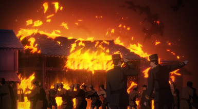 Houji prostrates himself before Shishio in shame, but the hitokiri isn’t so vain as to blame his loyal dog. Sano was a wild card, but the real problem was Saitou’s planning to combat the fires and especially Kenshin divining the main prongs of Shishio’s master plan. Shishio blames himself for dropping his guard, but makes it clear it won’t happen again. And he pays the Kenshingumi the compliment of telling them they’re now not only worth killing, but that killing them is necessary before he can take Japan and re-forge it in the fires of his vengeance.