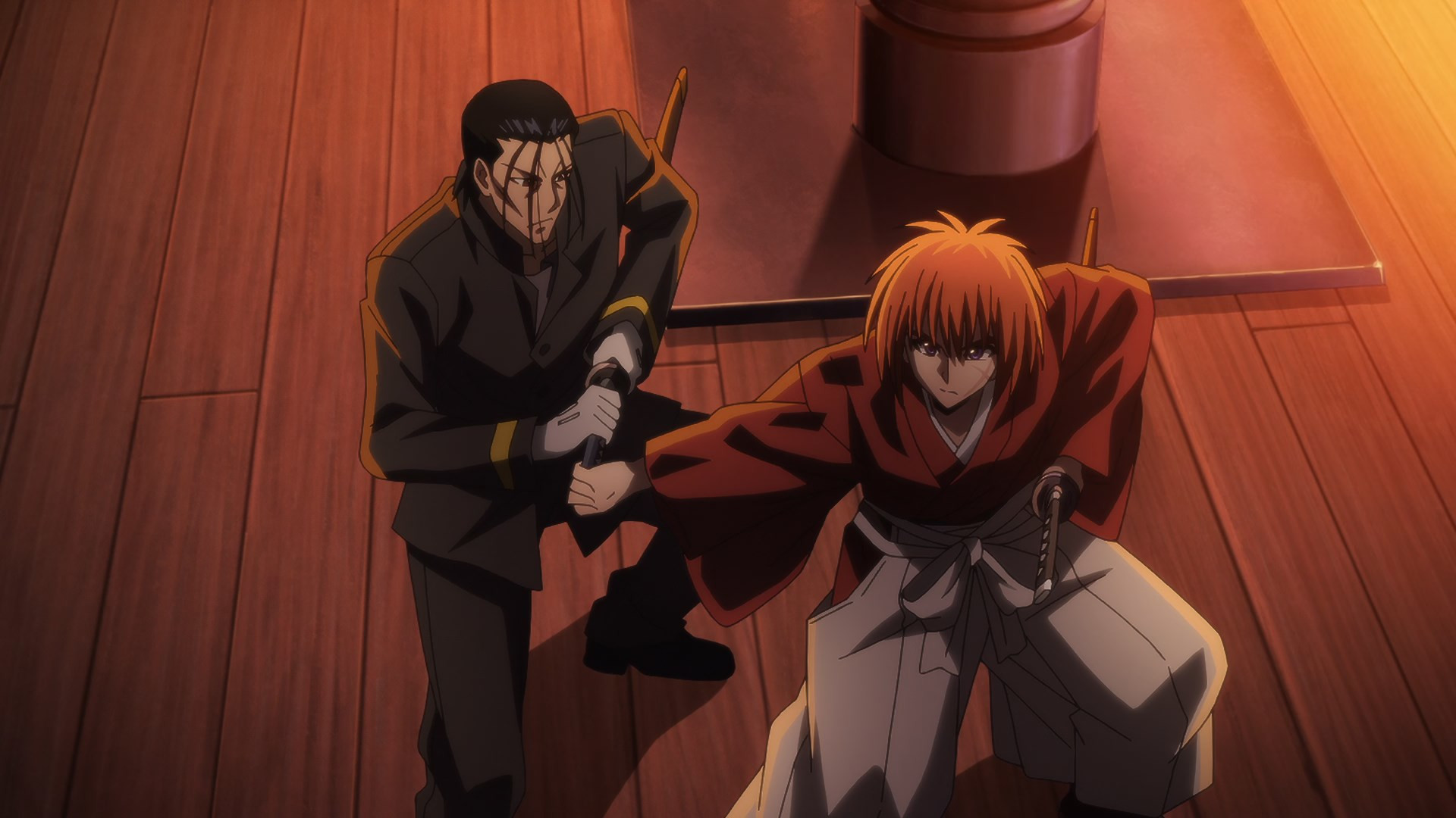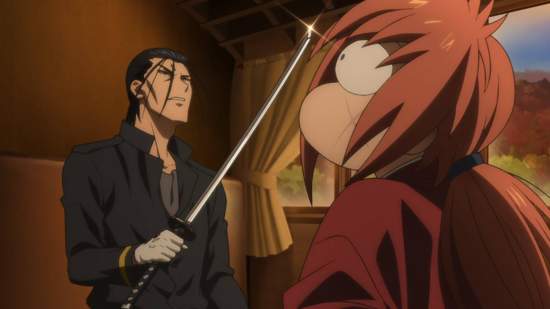 I’ll buy this, as written. It was perfectly in-character for Anji to do that, because he’s been perfectly consistent – no unnecessary killing. He’s even got it “written into his contract” with Shishio that he makes the call on killing or not. Also, Anji intervened to save Misao in the manga too, but it happened later and was over in a flash. In effect this wound up being more or less materially the same as the manga, with the exception that Anji’s nature was demonstrated far more clearly to the three good guys. That’s a little more character development but not a sea change, so all in all I’ll score this treatment a win.