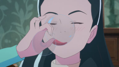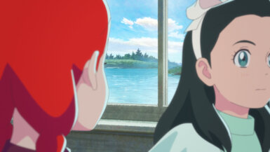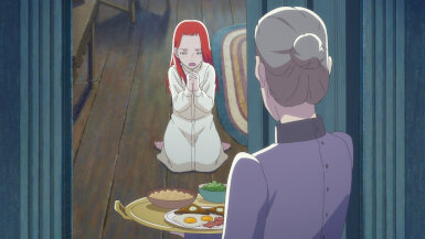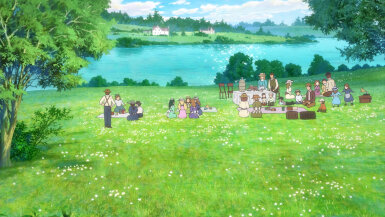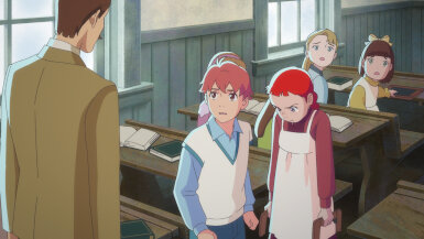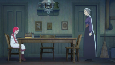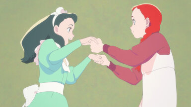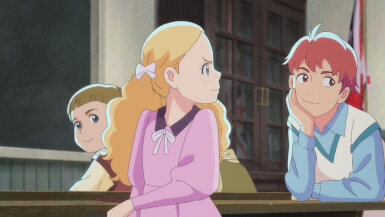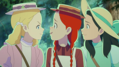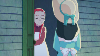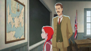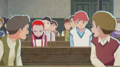 It must be ice cream week in anime. I found it funny that after yesterday’s Kusuriya no Hitorigoto featured ice cream, Anne gets her first taste of the frozen treat this week too. Anne has her red letter day at the picnic and makes new friends- not much to note here. The most important part of the episode comes last, when Anne starts school. She enjoys it at first- what’s not to love about it- friends, learning new things, getting out of the house. I was worried when they added in the scene with the girls giggling over lunch by the river- dancing awfully close to the “CGDCT” line- which was not at all the spirit of the book. Thankfully, it moved away from that, but it still gives me a small cause for concern in the future. Anne makes a splash, in a good way for the first time. While she’s behind a grade (not surprising given the scattered upbringing she’s had) she’s clearly a bright little girl, excelling in academics. She quickly makes it to the head of her class.